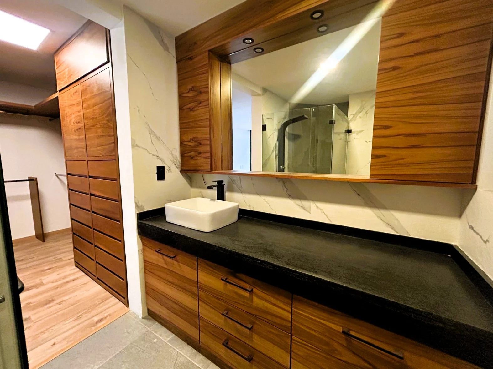 – Departamento PH con 128.51 m2 de superficie privada más Roof Top privado de 102.04m2. Cuenta con recámara principal con vestidor y baño completo, sala, comedor, balcón, cocina integral abierta, estudio, medio baño de visitas, área de lavado con baño completo y bodega.