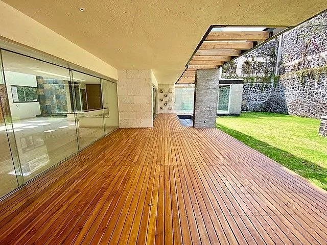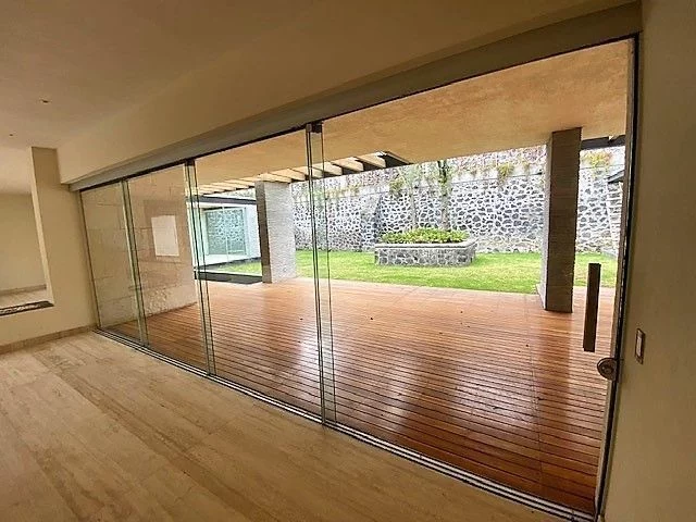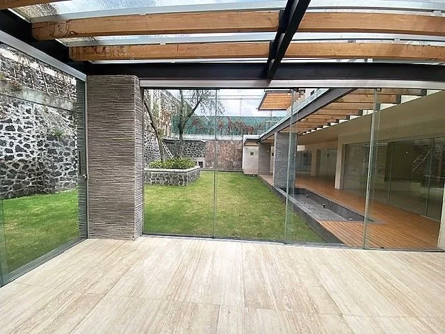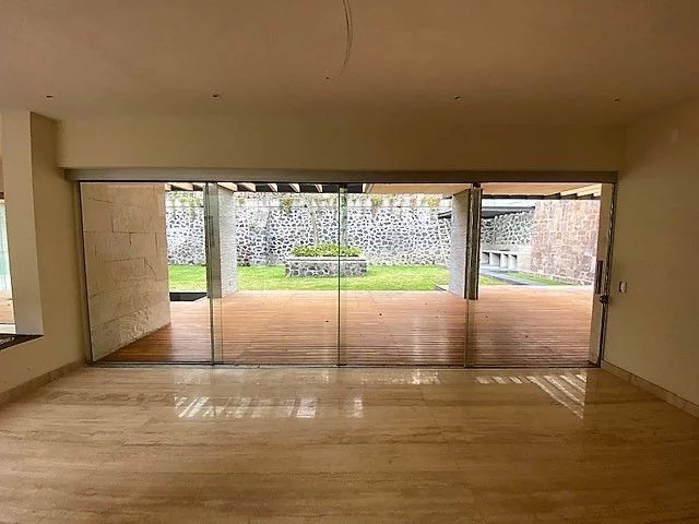 Tienes un salón de eventos privado con ventanales de piso a techo, baños de invitados y acceso al jardín — que además se une a la terraza techada con asador.
