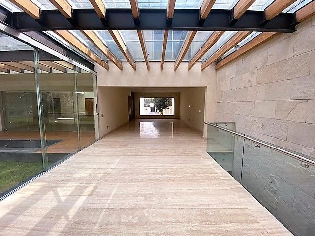 Sala de TV, pequeño estudio, áreas de servicio, cuarto de choferes, dos bodegas y estacionamiento para hasta 10 autos.