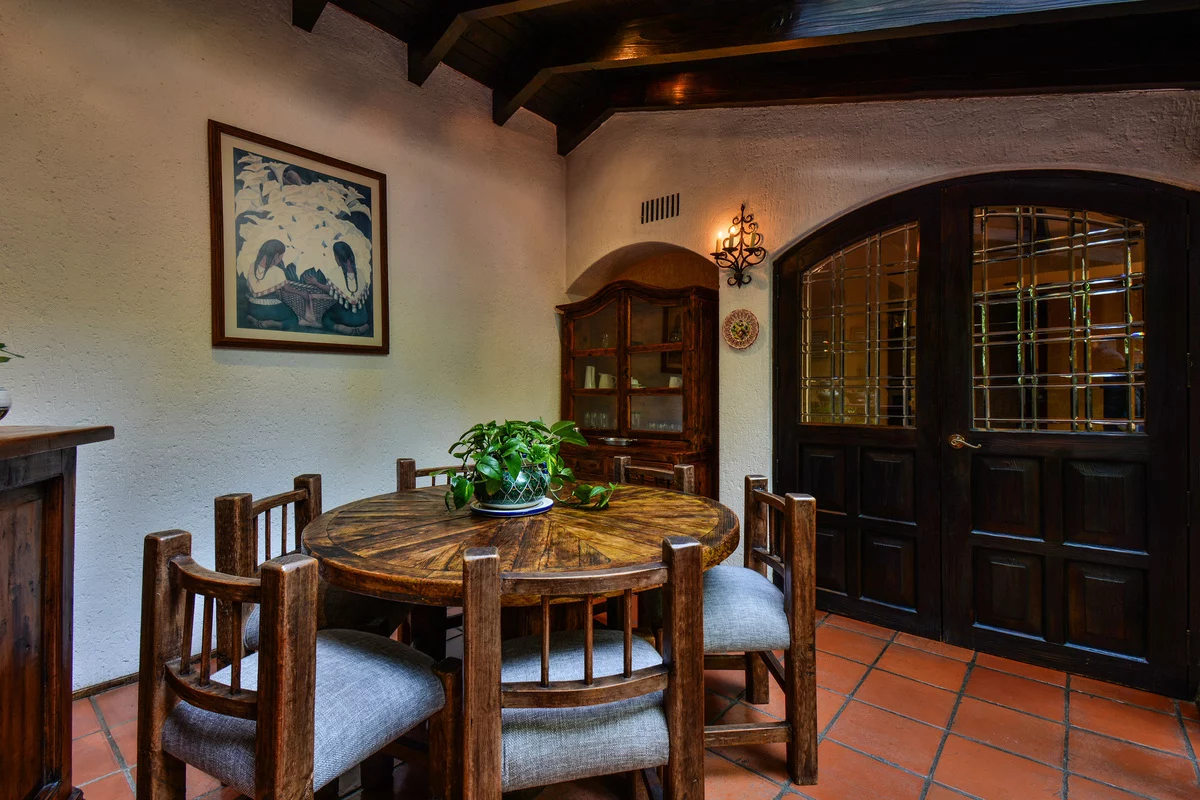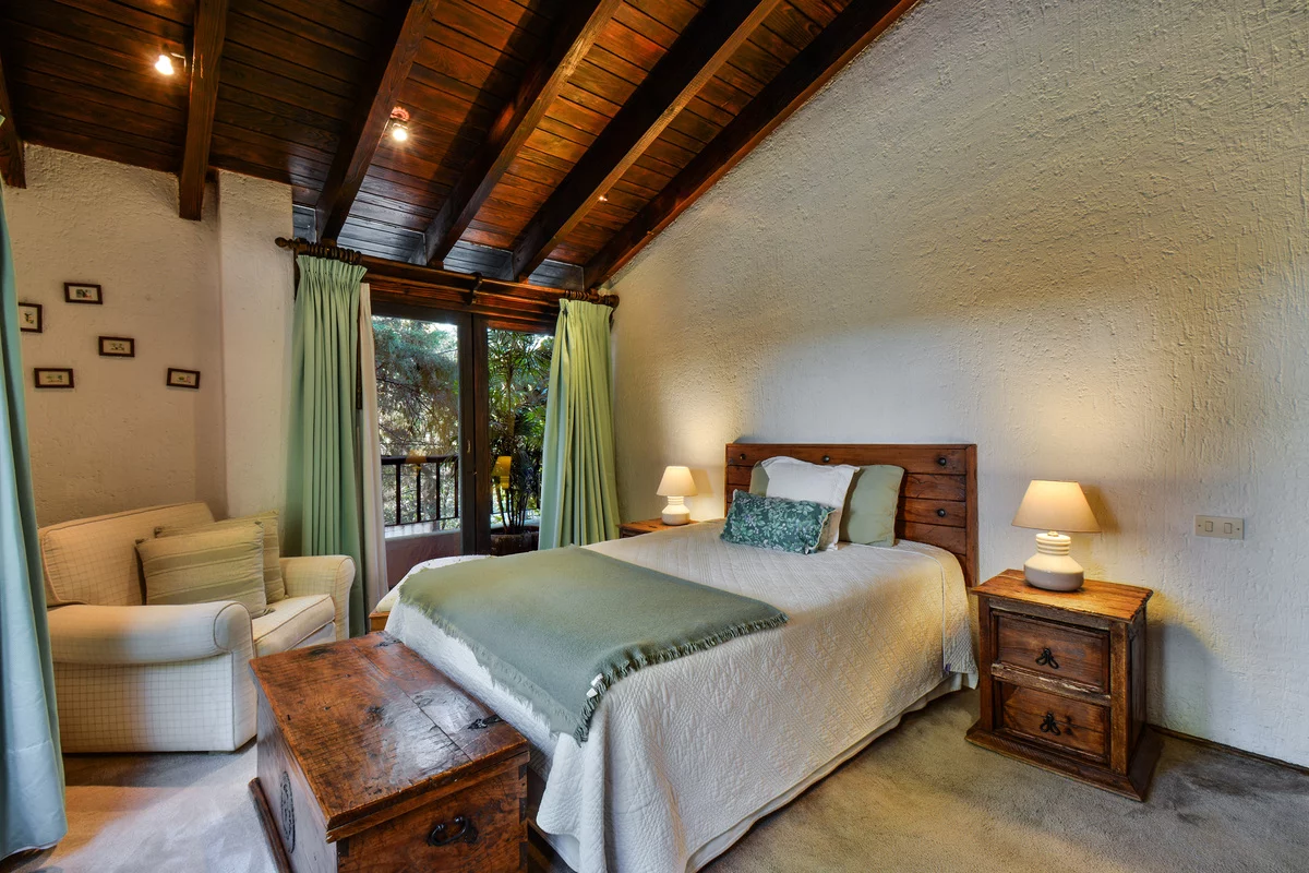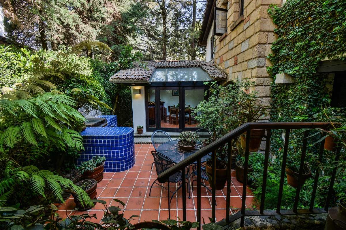 PRECIOSA CASA EN EXCLUSIVO FRACCIONAMIENTO, PROYECTO DEL ARQUITECTO ARTIGAS A UN COSTADO DE RANCHO SAN FRANCISCO. Disfruta de la comodidad de vivir en este gran espacio que te ofrece seguridad y confort. Cuenta con amplios e iluminados espacios, estancia con vistas totalmente arboladas, 3 recámaras con vestidor y baño cada una, gran cocina con antecomedor y salida a una agradable terraza y jardín con asador, sala de tv y estudio, cuarto de servicio y área de lavado , 2 estacionamientos techados. En áreas comunes cuenta con jardines, gimnasio, salón de eventos, estacionamiento de visitas y estricta vigilancia.