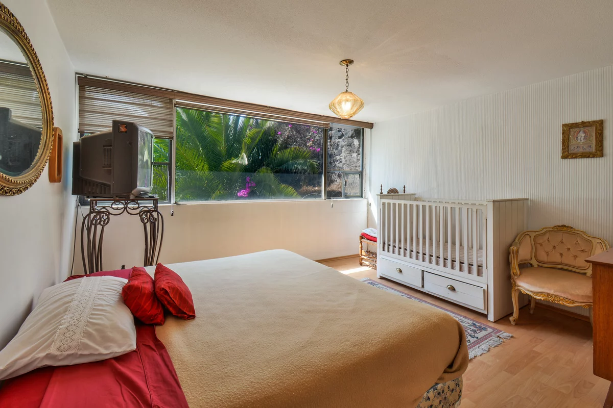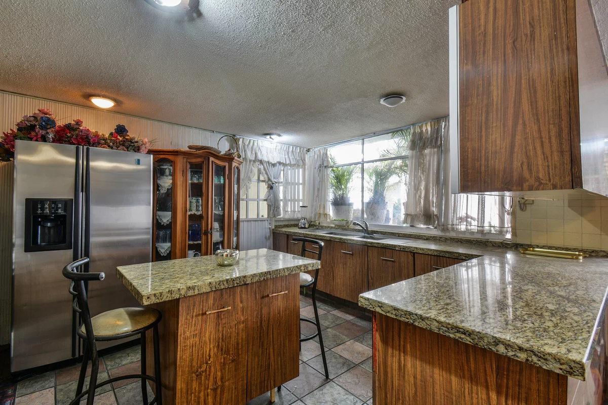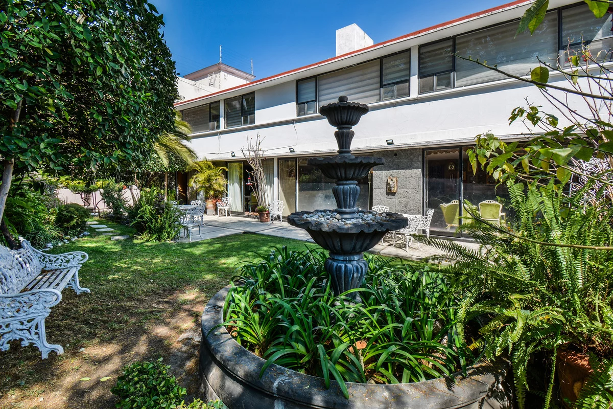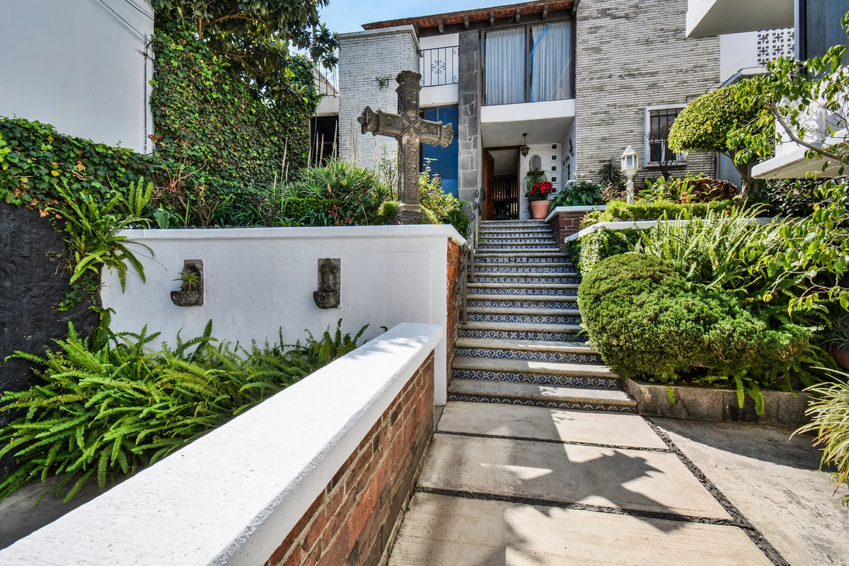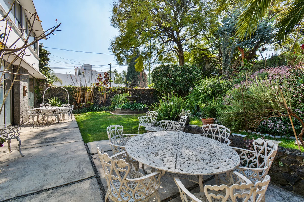 EXCELENTE CASA EN CALLE CERRADA CON VIGILANCIA, CON PROYECTO MUY FÁCIL DE REMODELAR, Y CON PRECIOSO JARDIN. La casa cuenta con vestíbulo, estudio, sala y comedor con salida a terraza y gran jardín de 300m2, cocina con antecomedor, medio baño de visitas, 3 recámaras, la principal con vestidor y baño, las otras dos con closet y baño, sala de tv y área de costura, área de servicio y de lavado. En el jardín se encuentra un enorme salón de usos múltiples y una cancha de squash para disfrutar con los amigos o la familia, además de 4 estacionamientos techados. Y eso no es todo! Cuenta con una casita independiente con 4 recámaras, sala de tv y dos baños para invitados o para algún familiar que quiera disfrutar de sus propios espacios.