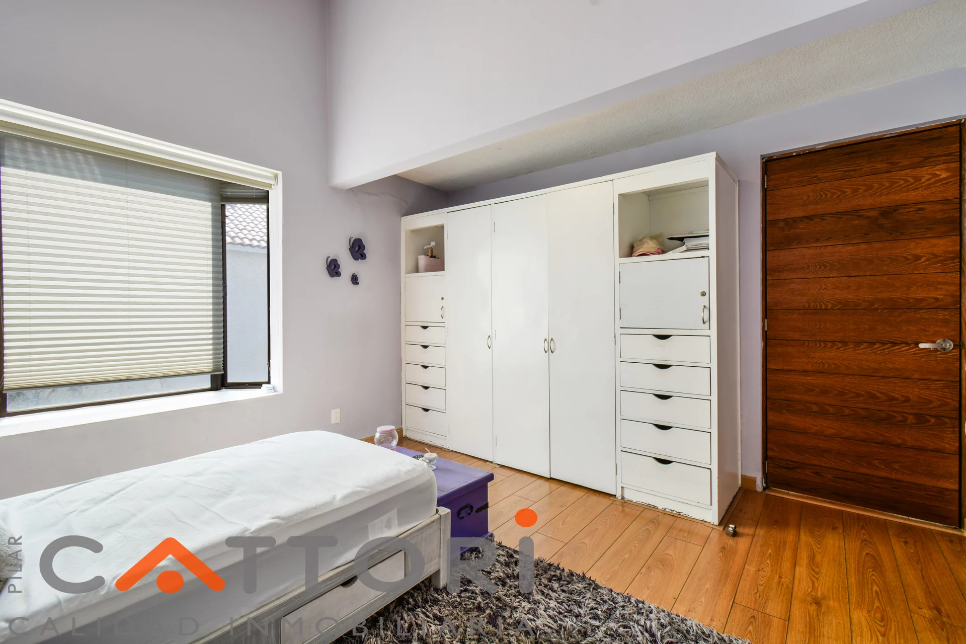 Subiendo a la planta superior, te espera un amplio hall que puede transformarse en tu sala de TV, el lugar perfecto para esas noches de cine en casa. Aquí tendrás tres recámaras, cada una diseñada con el confort en mente. La recámara principal, por ejemplo, cuenta con su propio vestidor y baño, lo que no solo significa privacidad, sino también lujo. Comparado con otras propiedades de la zona, esta distribución inteligente permite que cada miembro de la familia tenga su espacio y privacidad, algo que muchos buscan y pocos encuentran.