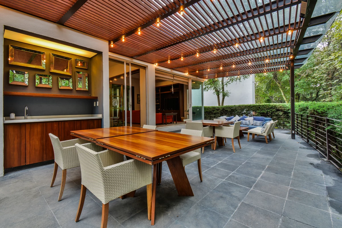 ¡APROVECHA! ÉSTA GRAN OPORTUNIDAD DE VIVIR EN UN LUGAR PRIVILEGIADO EN LA ZONA SUR-PONIENTE DELA CIUDAD. Precioso fraccionamiento residencial con estricta vigilancia, amplias zonas boscosas, pista de joging, salón de eventos, jardín, juegos infantiles y canchas de paddle. ¡Y eso no es todo! La casa es espectacular, tiene espacios muy generosos y acabados de excelente calidad. Disfruta de preciosa sala y comedor , de una cocina espectacular y acogedora sala de tv, ambos con salida a una gran terraza techada y al jardín, un estudio muy agradable y medio baño de visitas. En el segundo nivel, sala de tv más familiar, 3 recámaras cada una con baño y vestidor. En el nivel superior, 4a recámara con baño y áreas de servicio. Tiene estacionamiento para 4 autos.
