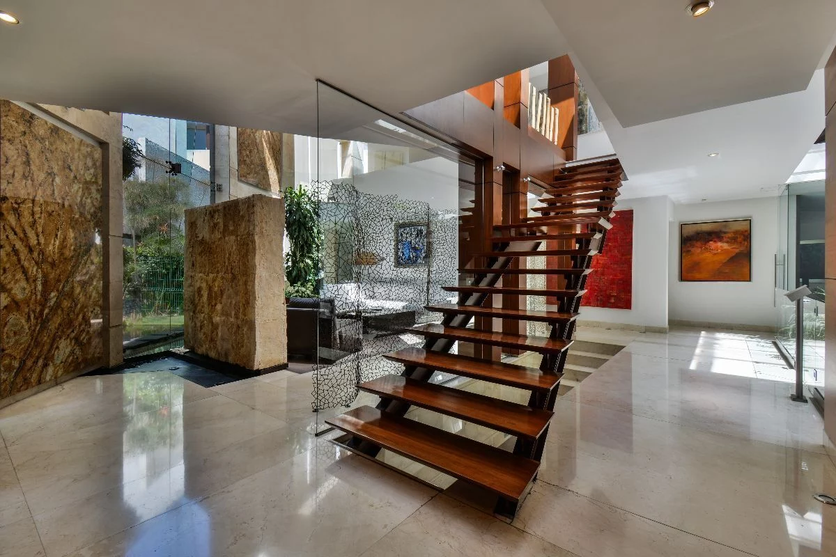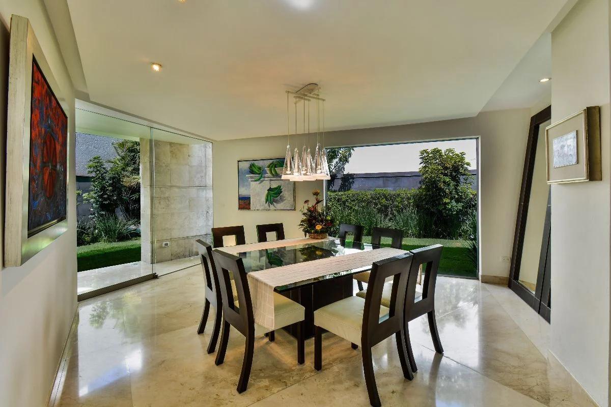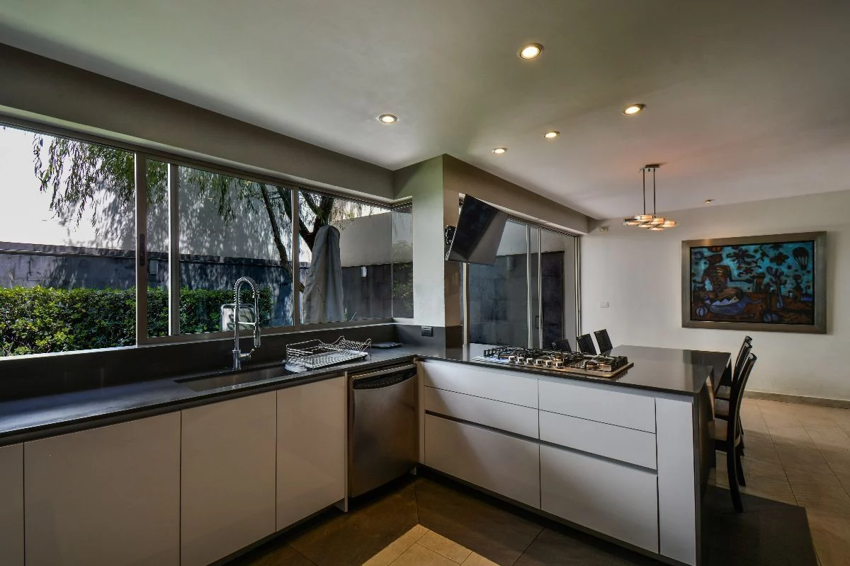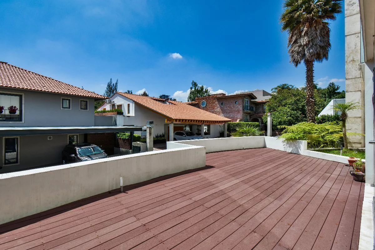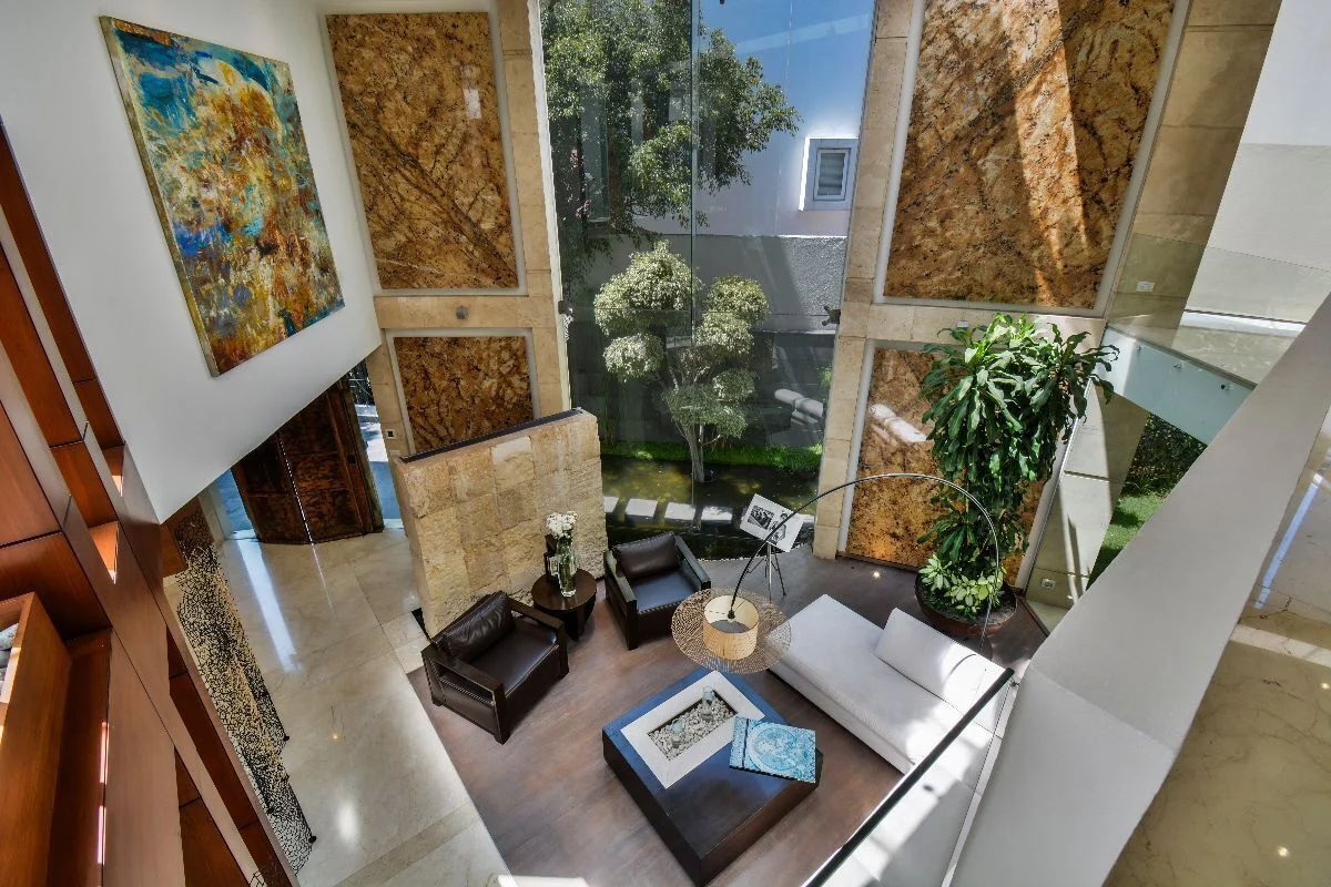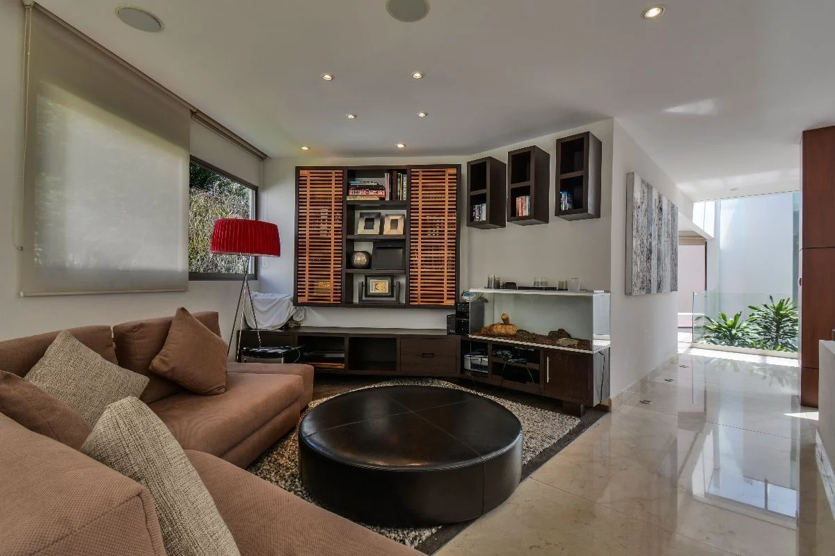 La casa tiene excelentes espacios e iluminación y cuenta con elevador, lo que te hará la vida más fácil…Consta de vestíbulo, gran sala con salida a la terraza y al jardín, comedor muy amplio, gran cocina que se integra a un family muy grande y acogedor, estudio, 6 estacionamientos, 2 cuartos de servicio, lavandería y una bodega.