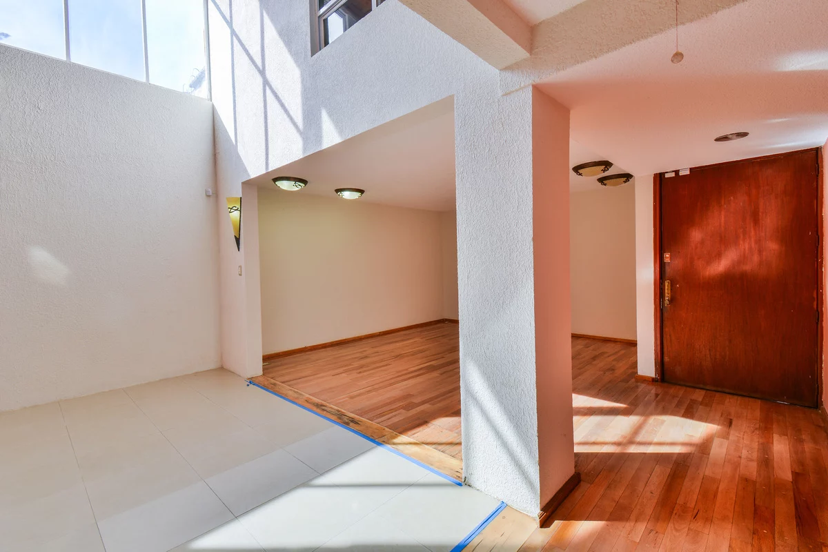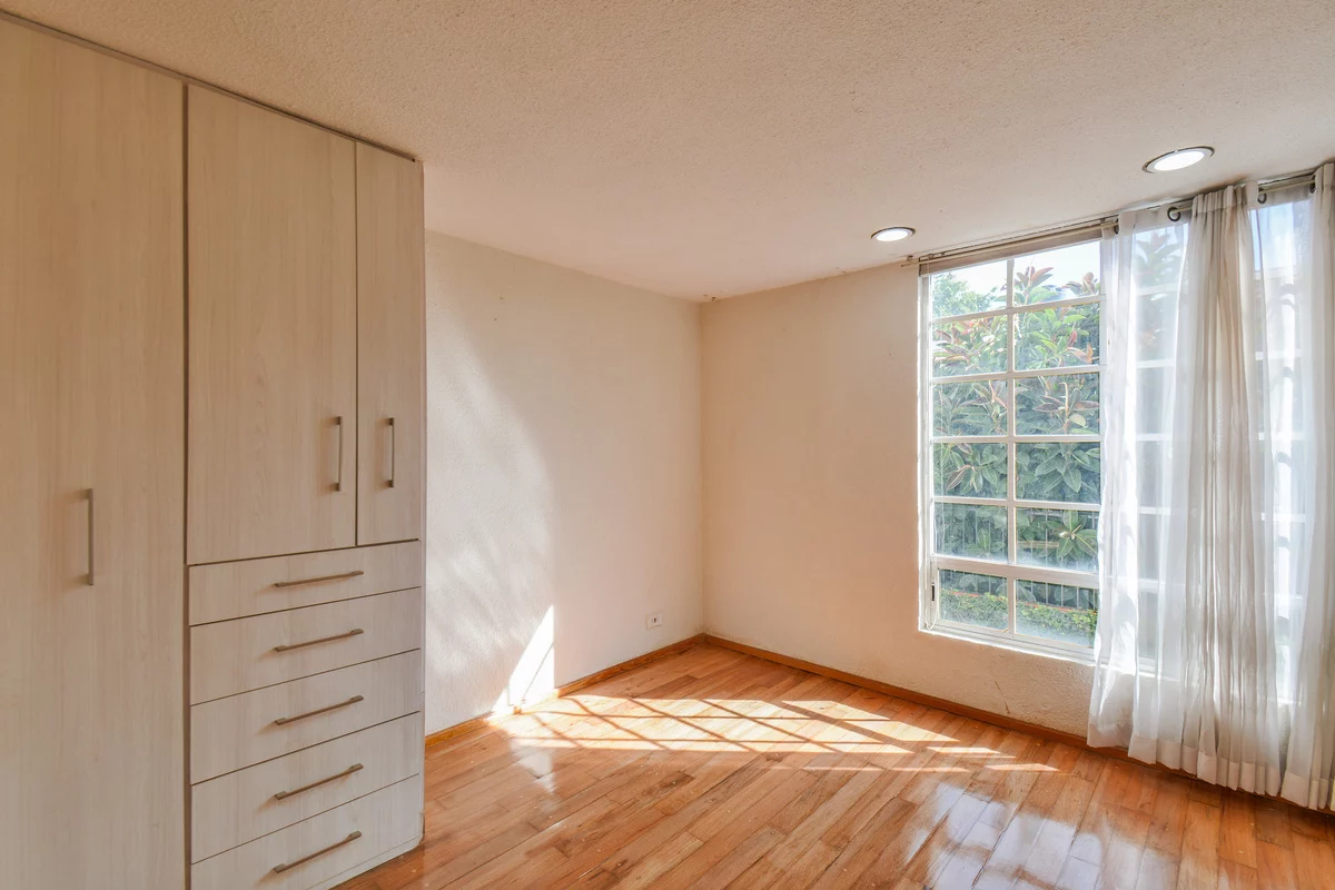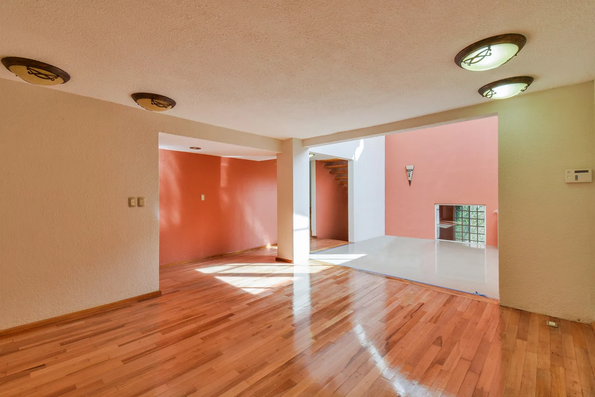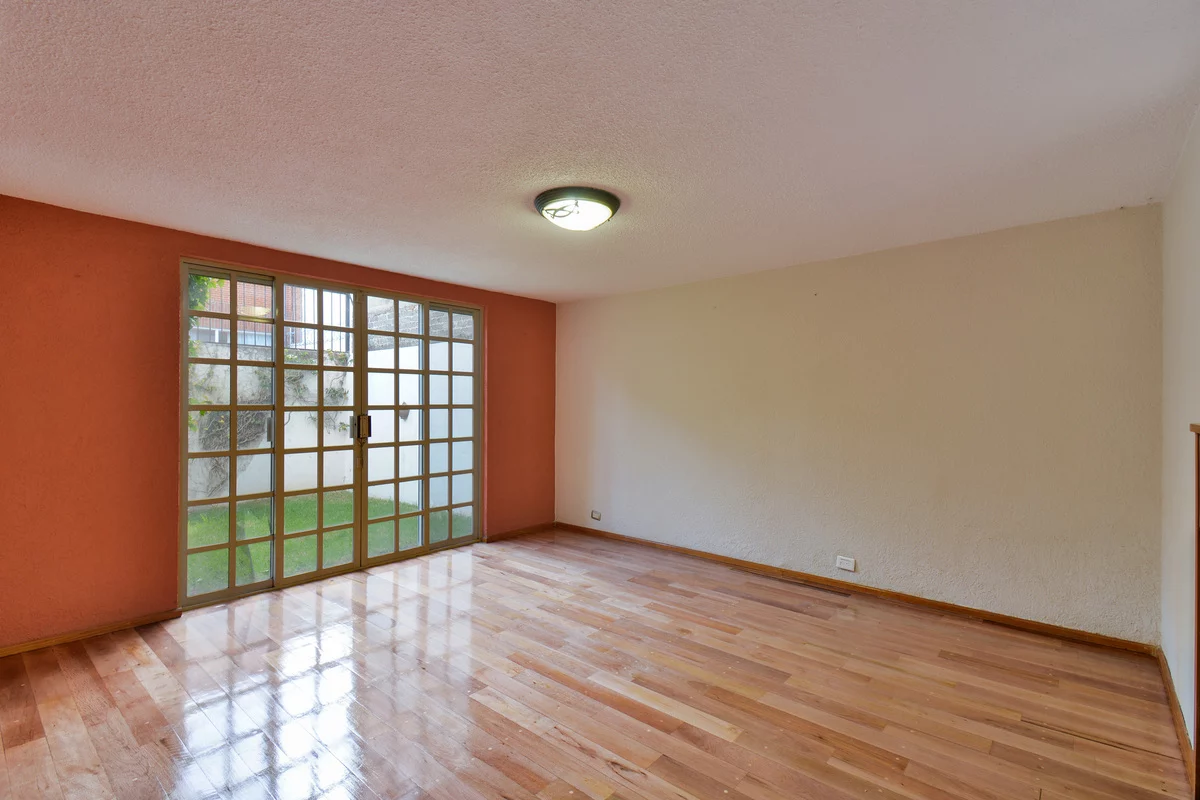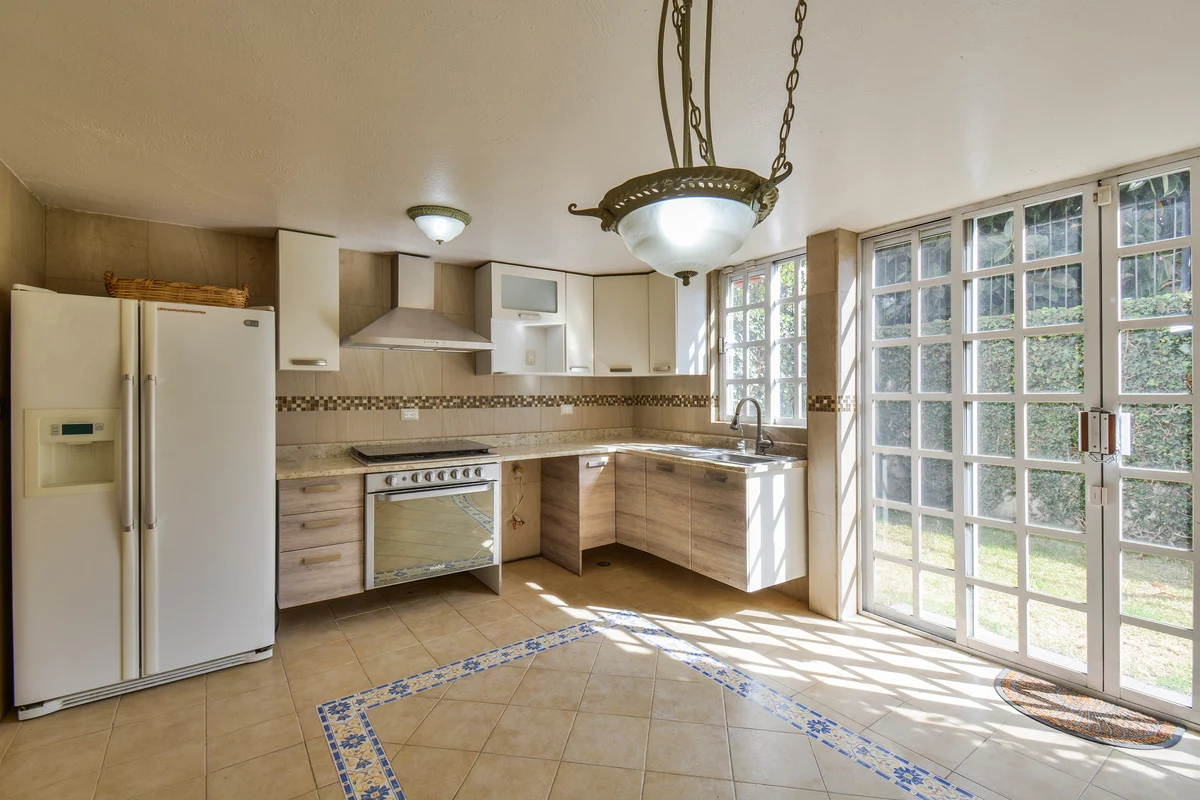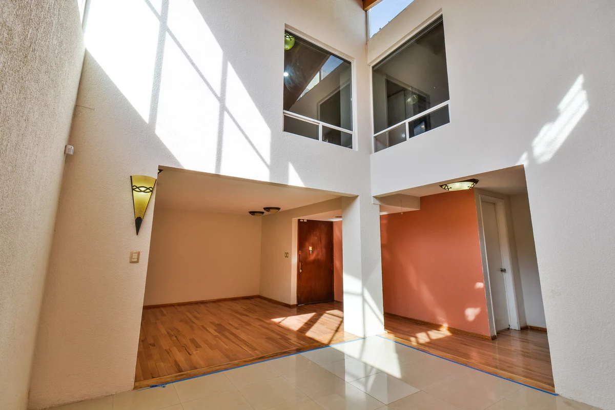 EN CALLE TRANQUILA, ANCHA Y ARBOLADA, CERCA DE PERIFÉRICO Y LOS PUENTES DE «ALTA TENSIÓN». Con muy buen proyecto y en muy buen estado de conservación. Desarrollada en dos niveles, cuenta con sala a doble altura con domo, lo que permite una excelente iluminación; comedor amplio, un estudio, cocina con desayunador, amplia alacena y medio baño de visitas; en medio nivel hacia abajo, linda sala de tv con salida al jardín. En planta alta, recámara principal con baño, vapor y vestidor, 2 recámaras secundarias que comparten un baño grande. Tiene cuarto de servicio, de lavado y 3 estacionamientos techados.