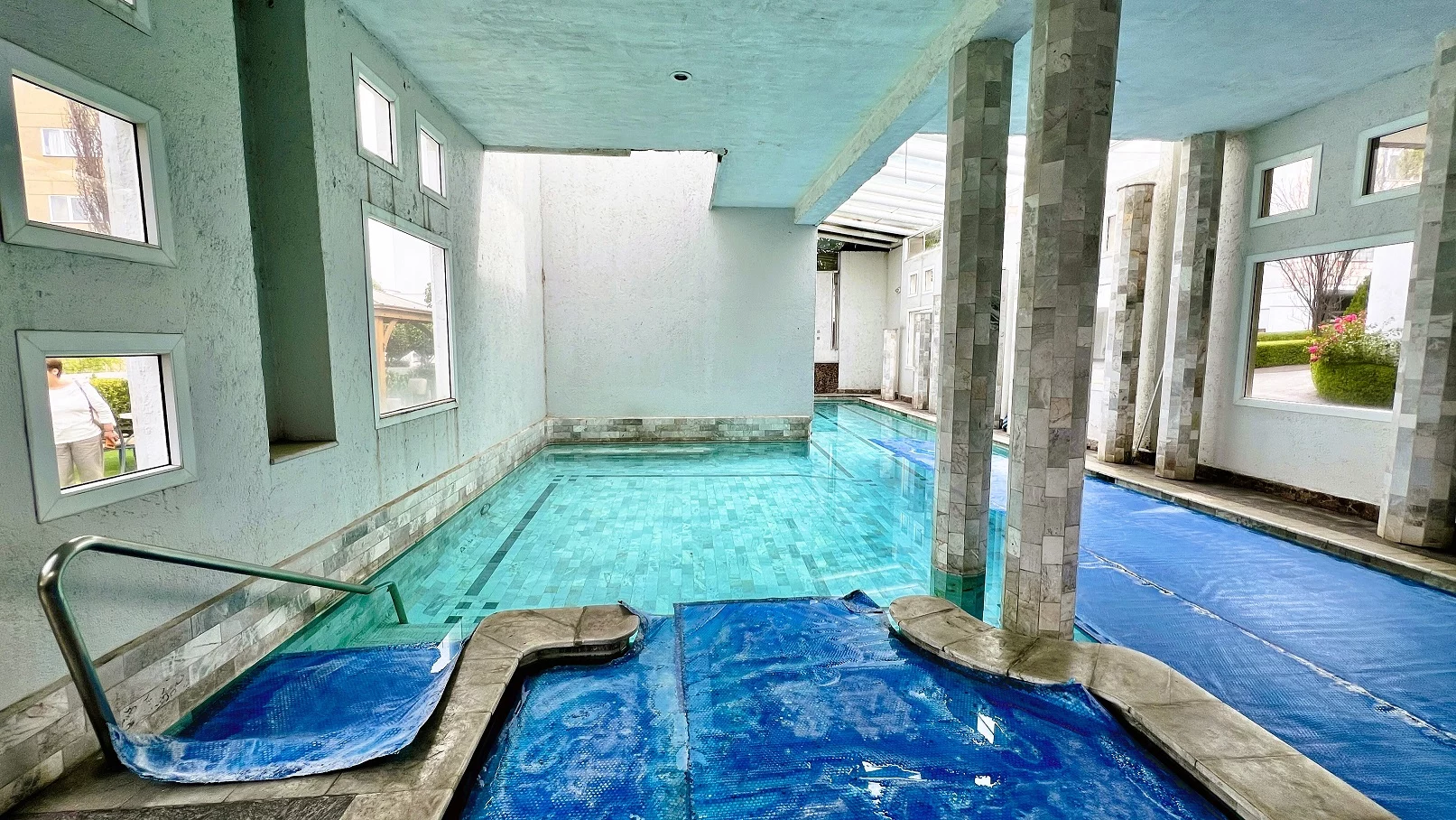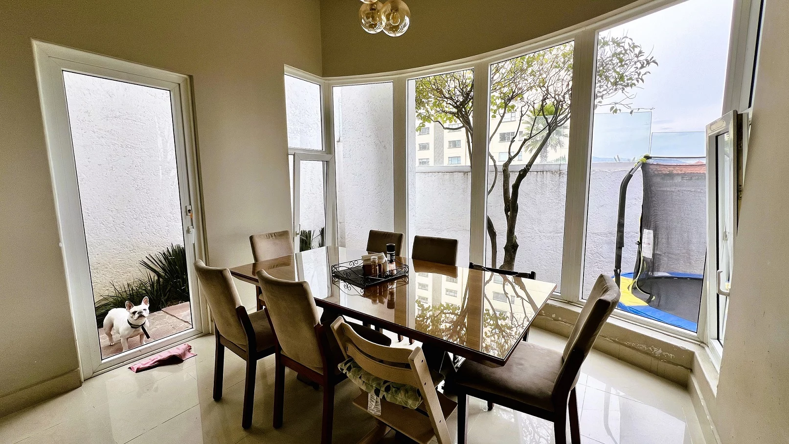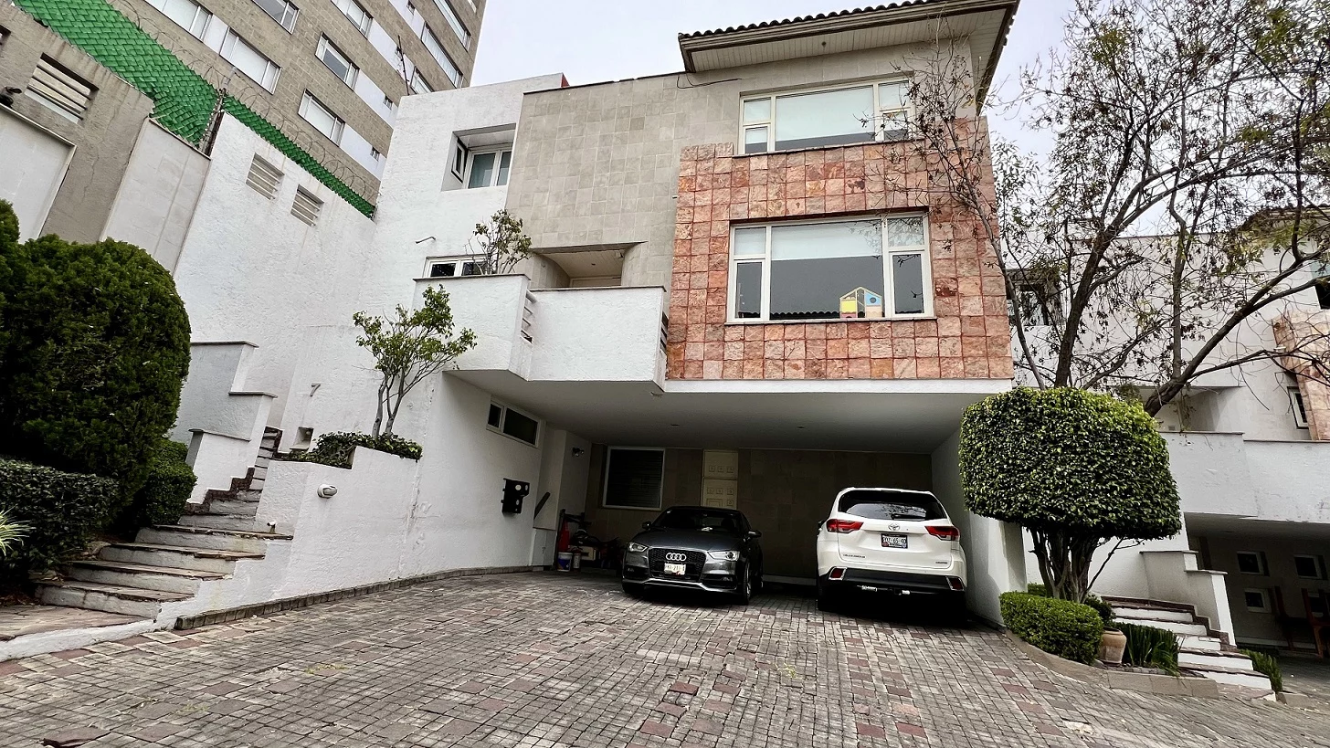 DENTRO DEL FRACCIONAMIENTO RESIDENCIAL CLUB DE GOLF LOMAS, CON DOBLE FILTRO DE SEGURIDAD AL FORMAR PARTE A SU VEZ DE UN CONDOMINIO DE SOLO 10 CASAS, LO QUE PERMITE VIVIR CON TOTAL TRANQUILIDAD. Cuenta con atractivas amenidades, como alberca, salón de eventos, y jardín con juegos infantiles. La casa está desarrollada en desniveles, y consta de recibidor, amplia sala a doble altura con chimenea y salida al jardín, comedor, cocina con desayunador y gran alacena, gimnasio, medio baño, y una recámara con baño y vestidor. En el siguiente nivel, sala familiar de tv muy agradable, recámara principal muy amplia con baño, tina y vestidor, y 3a recámara con baño y closet. Tiene 3 estacionamientos independientes y bodega.