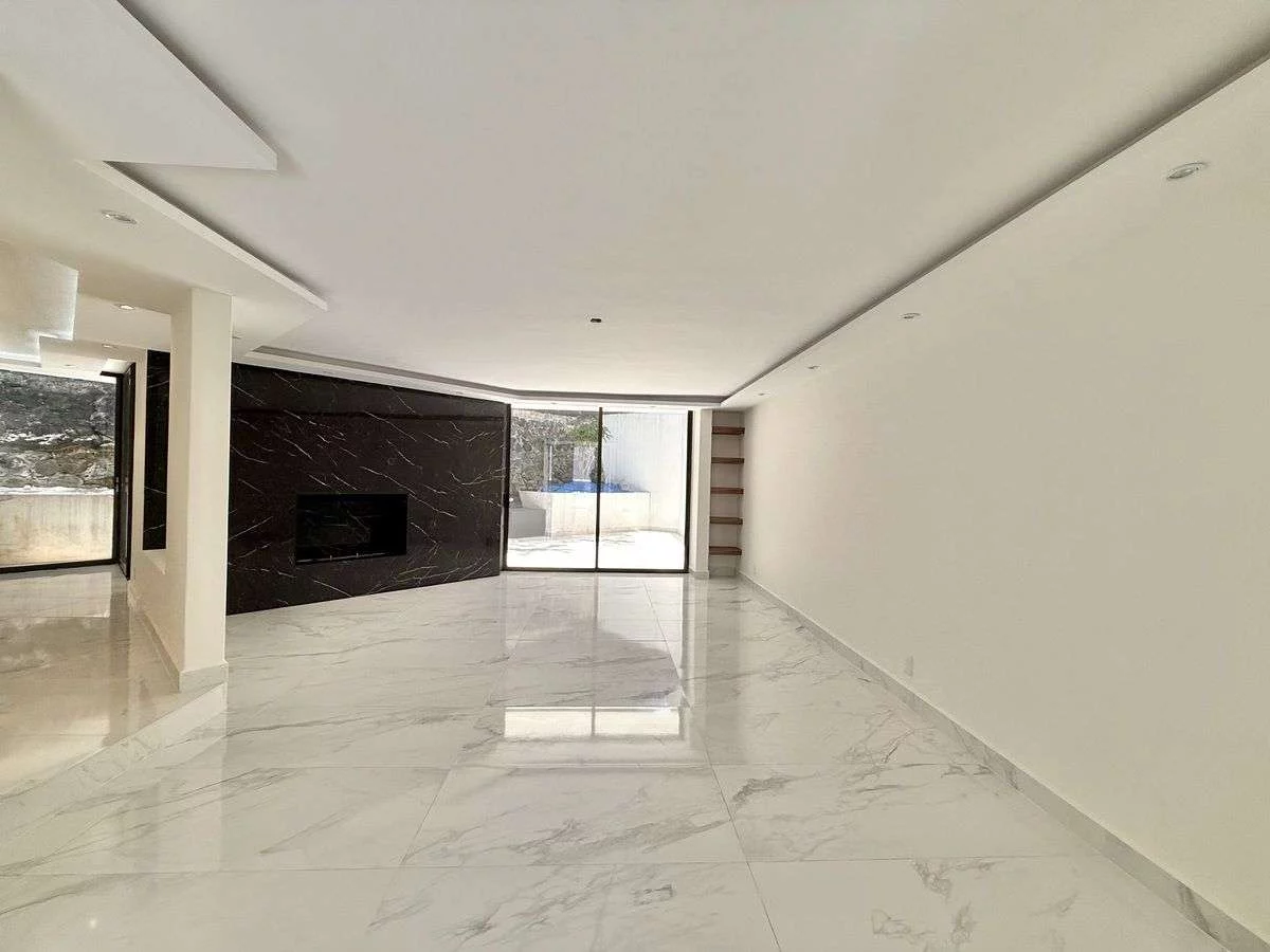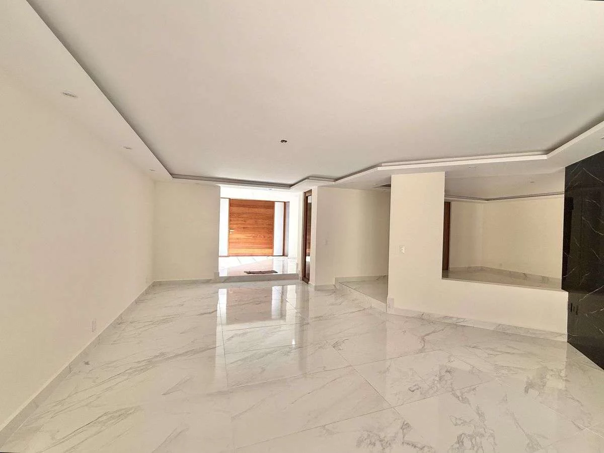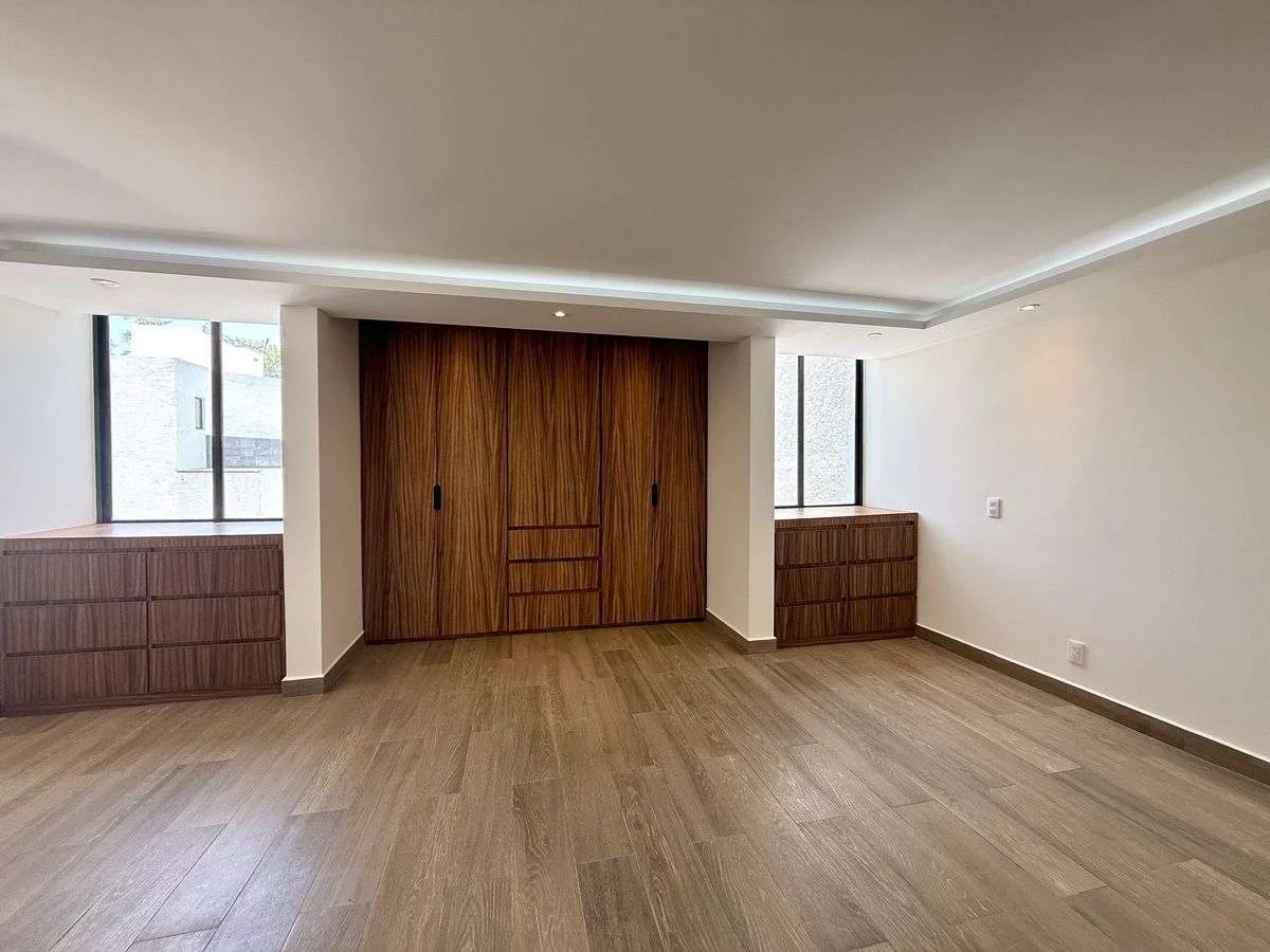 Cuenta con 4 recámaras, la principal con un baño y un vestidor sorprendentes, otra recámara con baño integrado y gran closet y las otras 2 comparten baño. Además, área de estudio, sala de TV muy amplia, sala y comedor con salida a gran terraza con asador, cava y una cocina espectacular equipada con microondas y lava vajillas