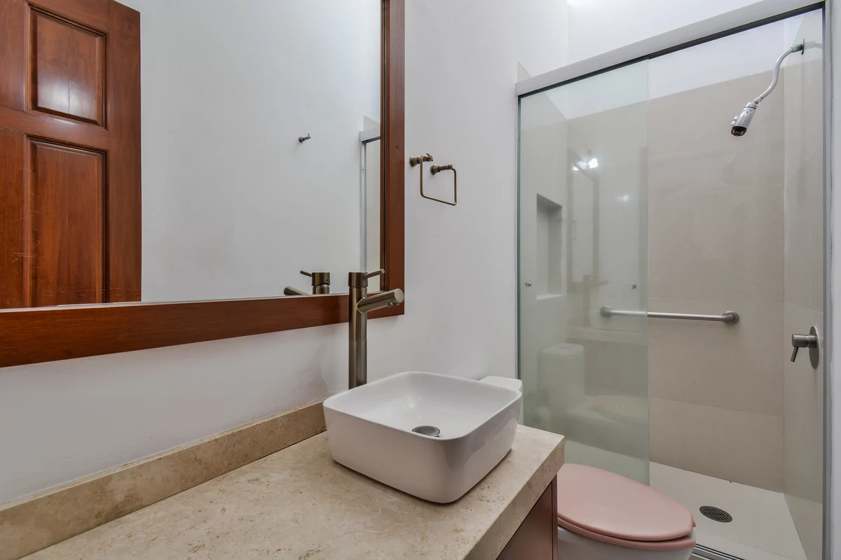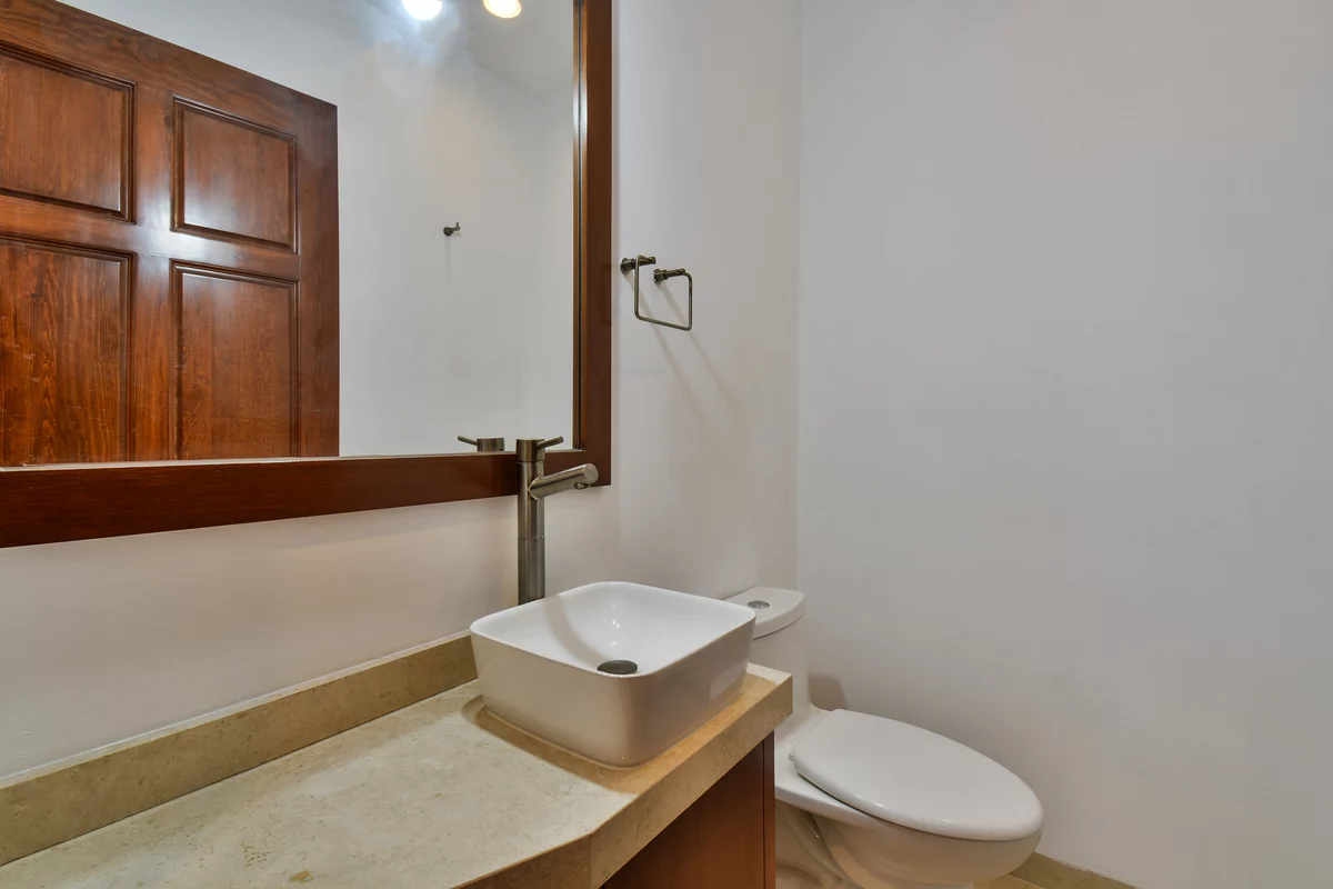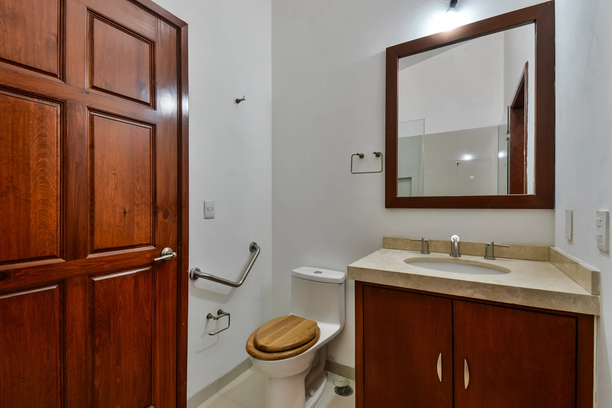 dos bodegas, elevador y dos estacionamientos. El condominio cuenta con jardín en área común.