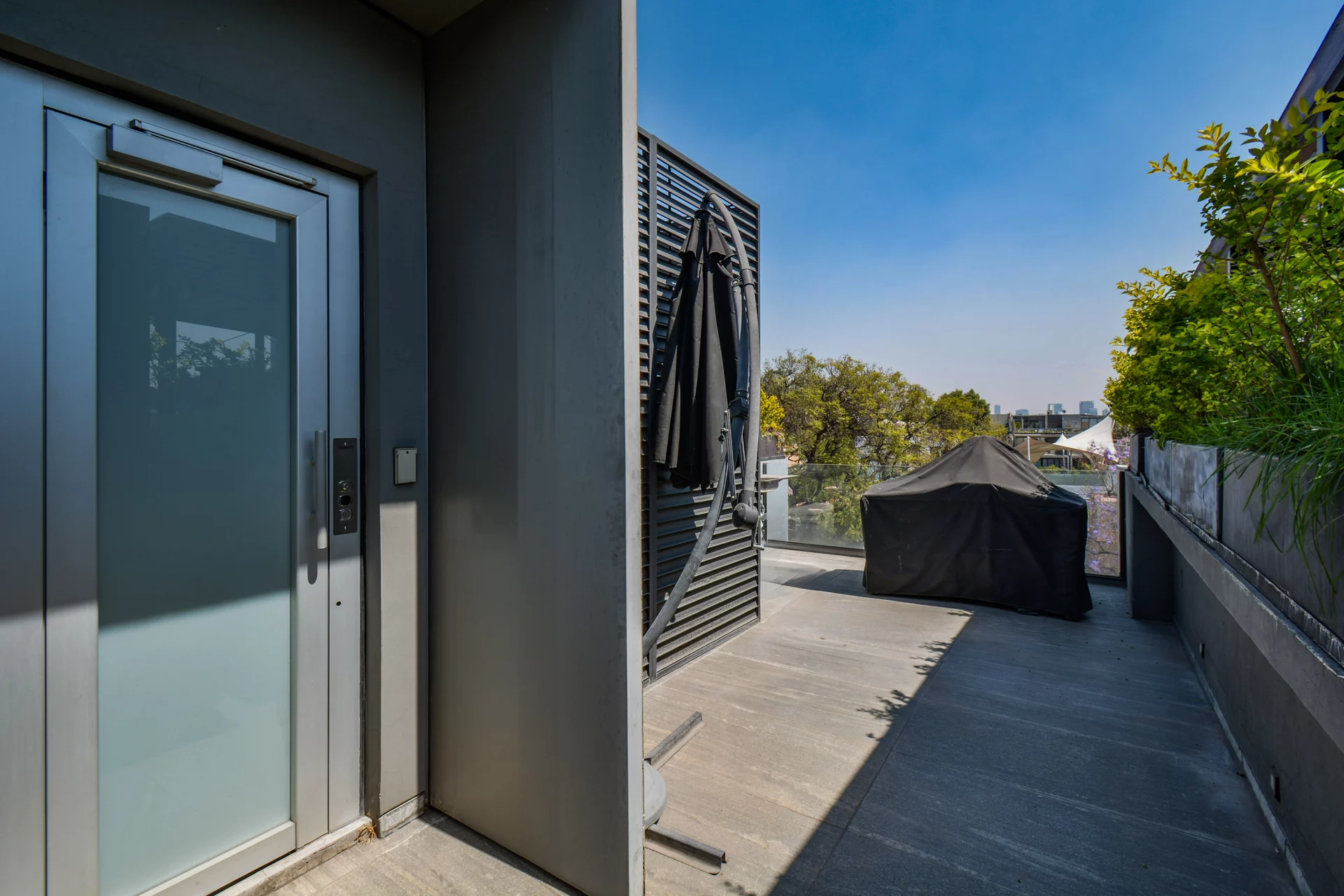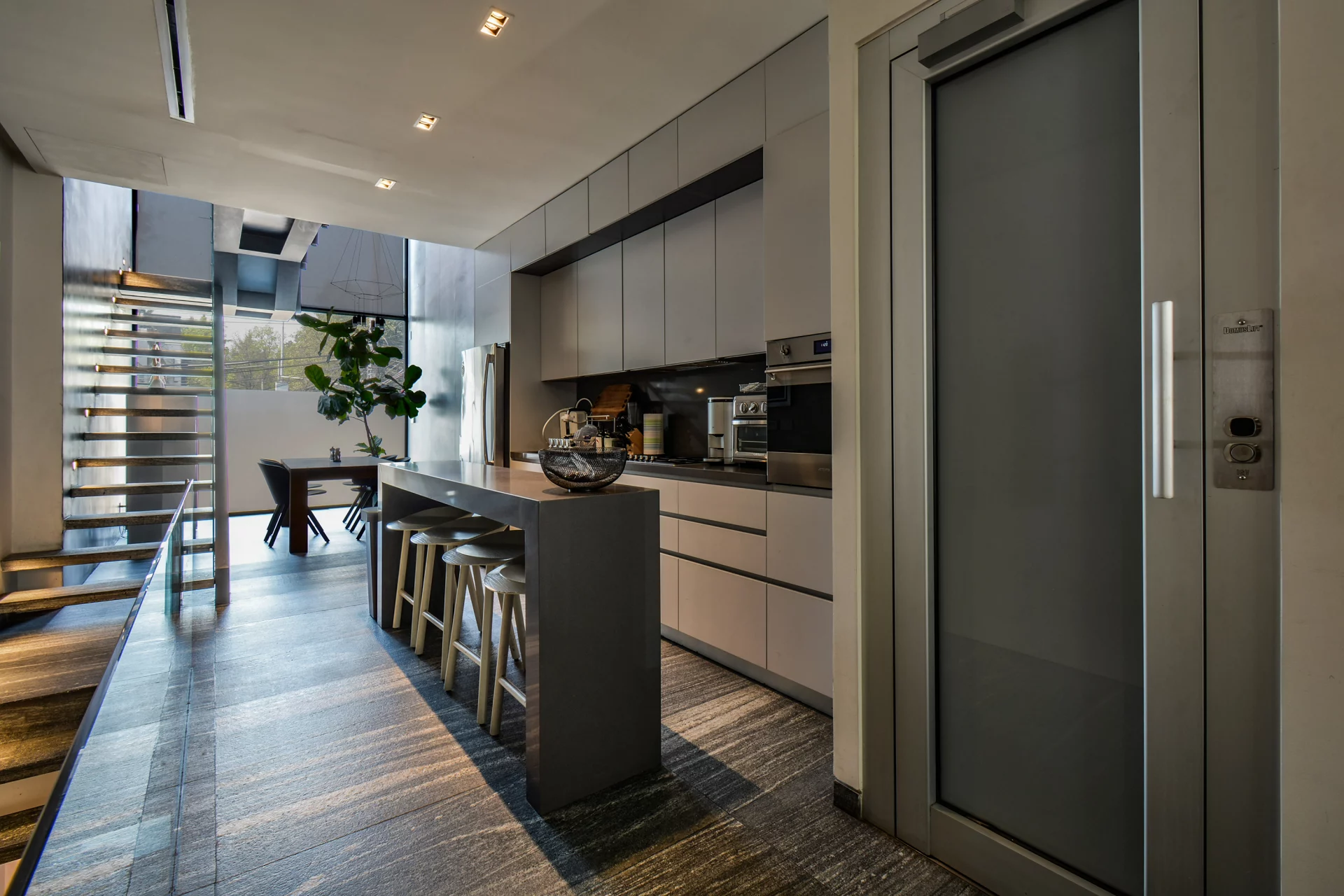 La propiedad cuenta con elevador privado que conecta todos los niveles, desde el estacionamiento hasta el rooftop.