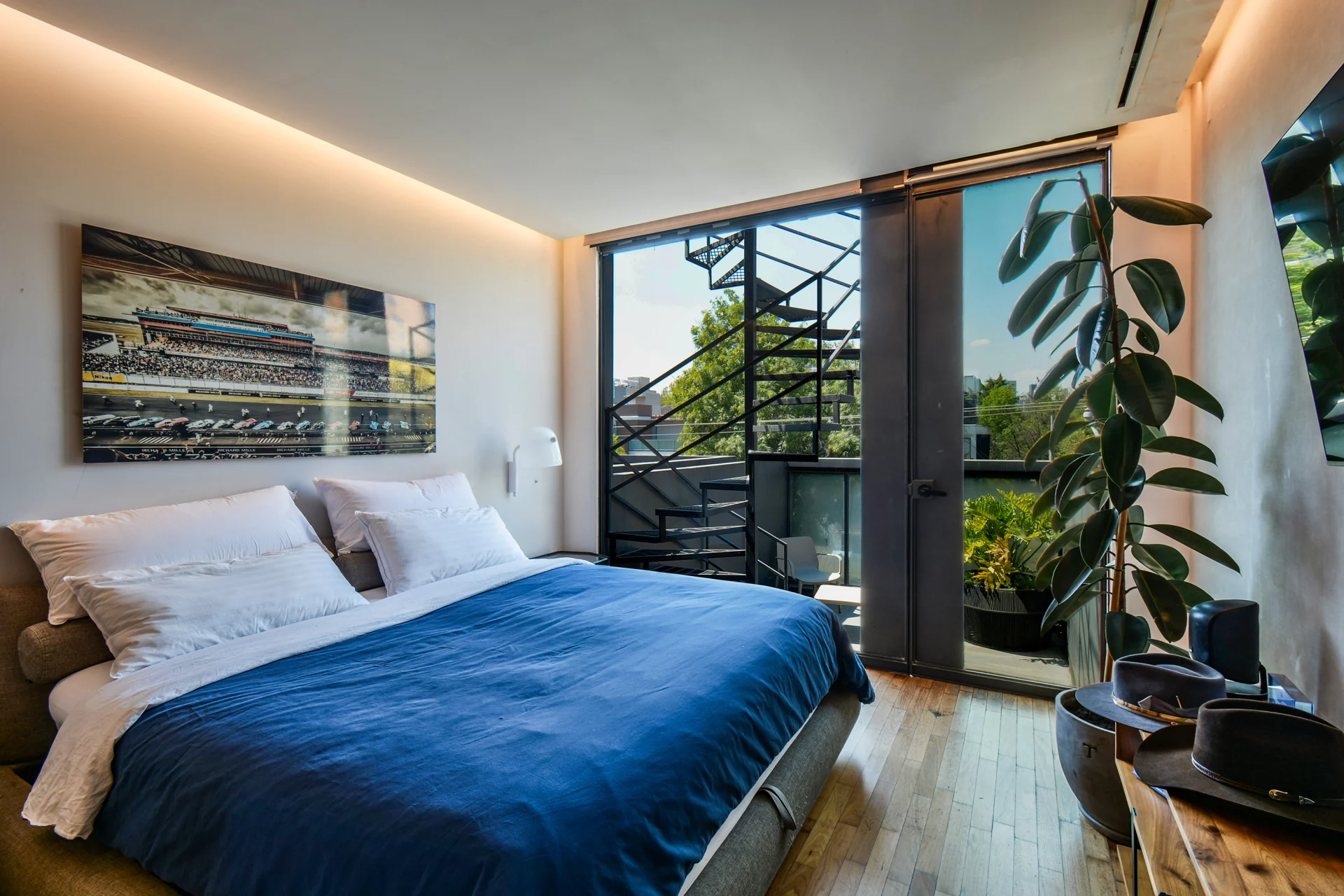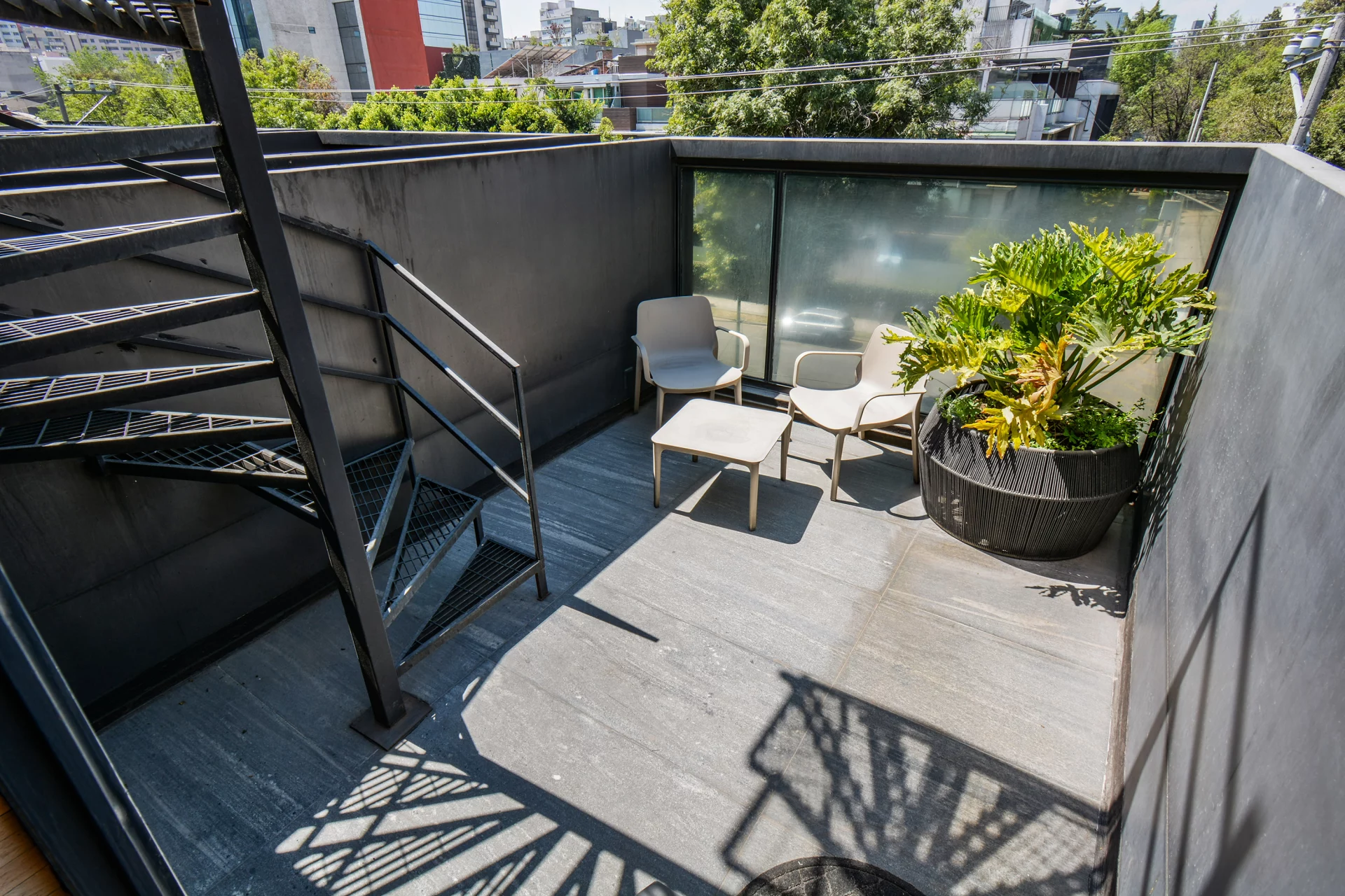 Subiendo un piso más llegas a la recámara principal, un espacio íntimo y elegante que cuenta con una hermosa terraza privada al aire libre, perfecta para comenzar el día con calma o relajarte por la noche.