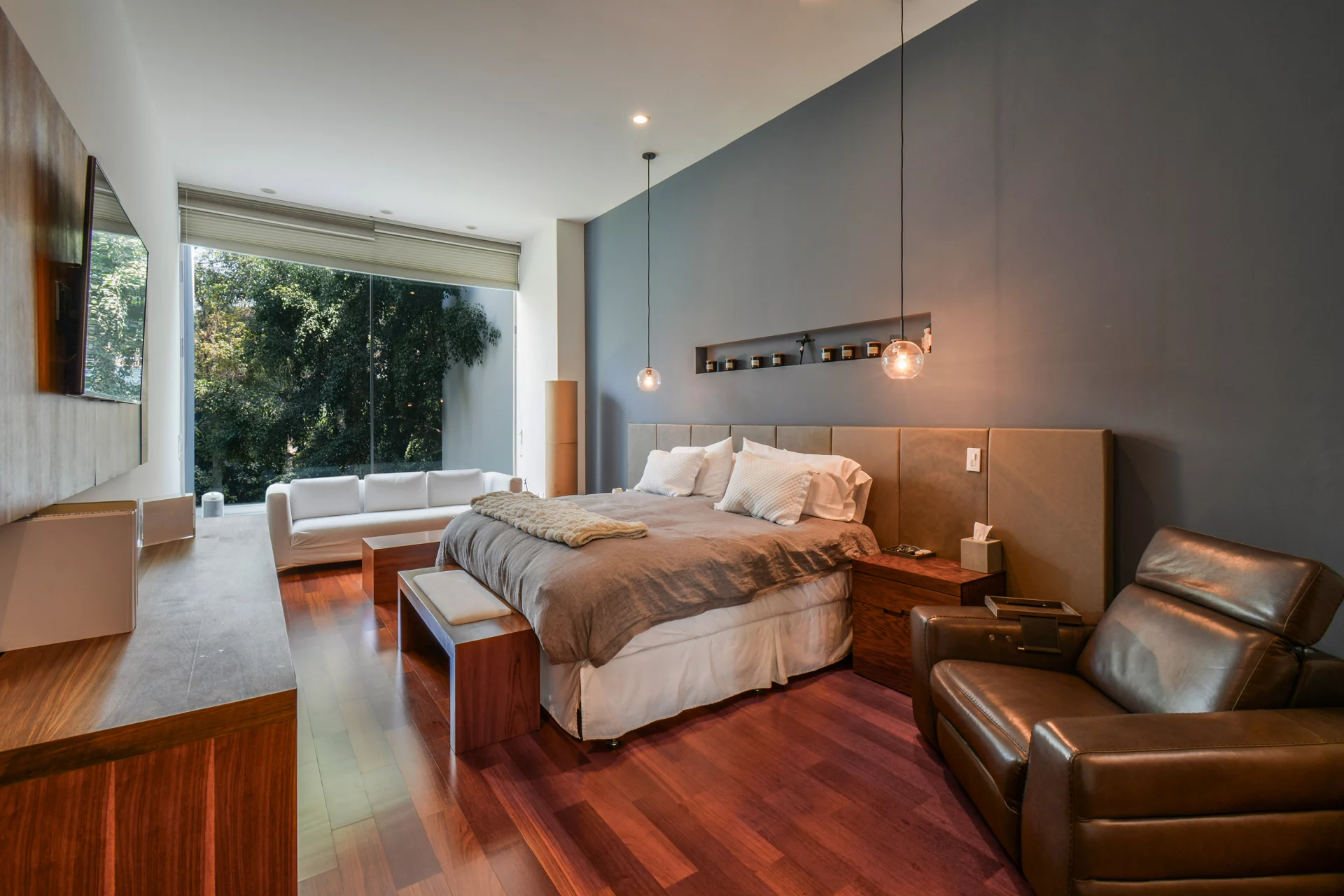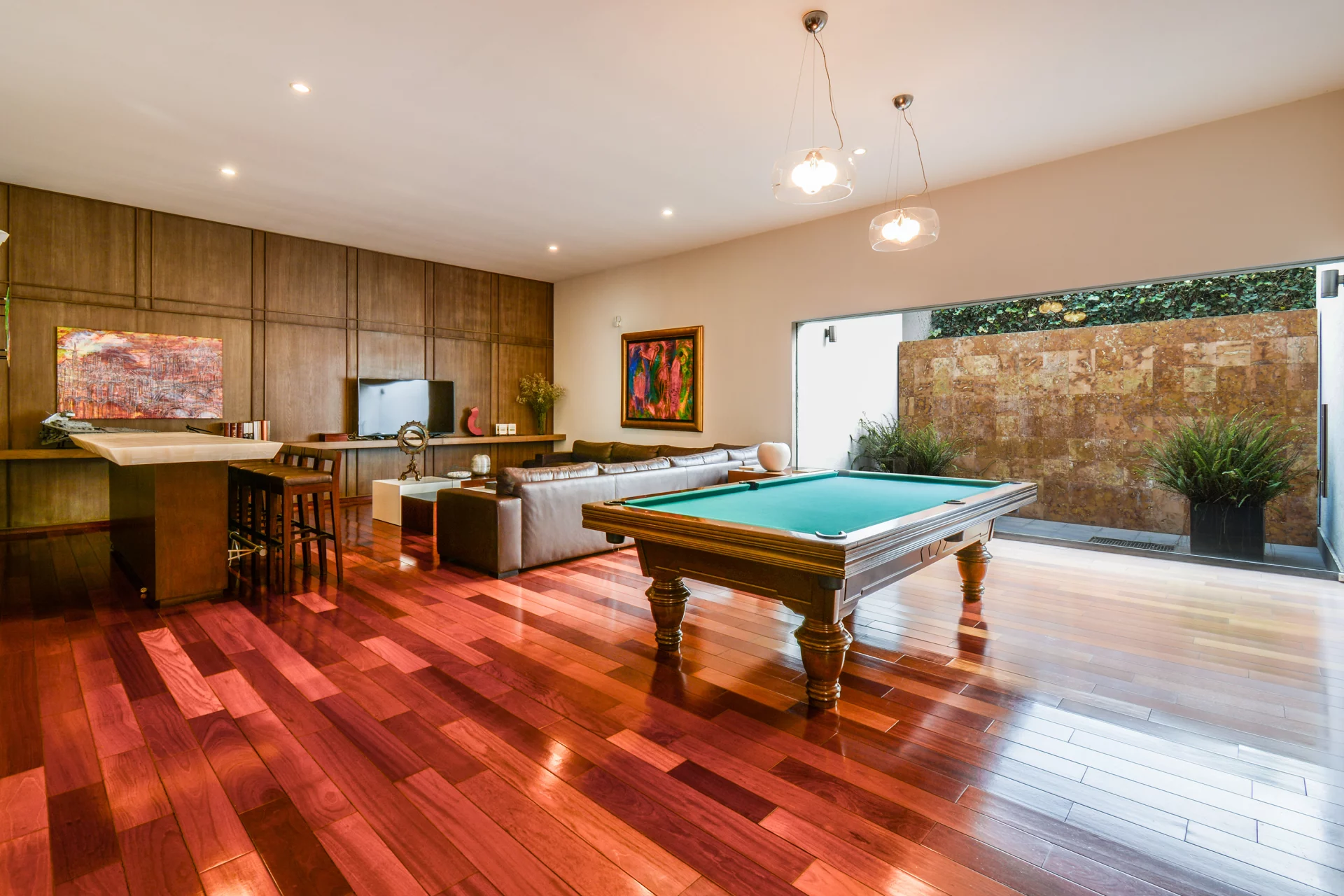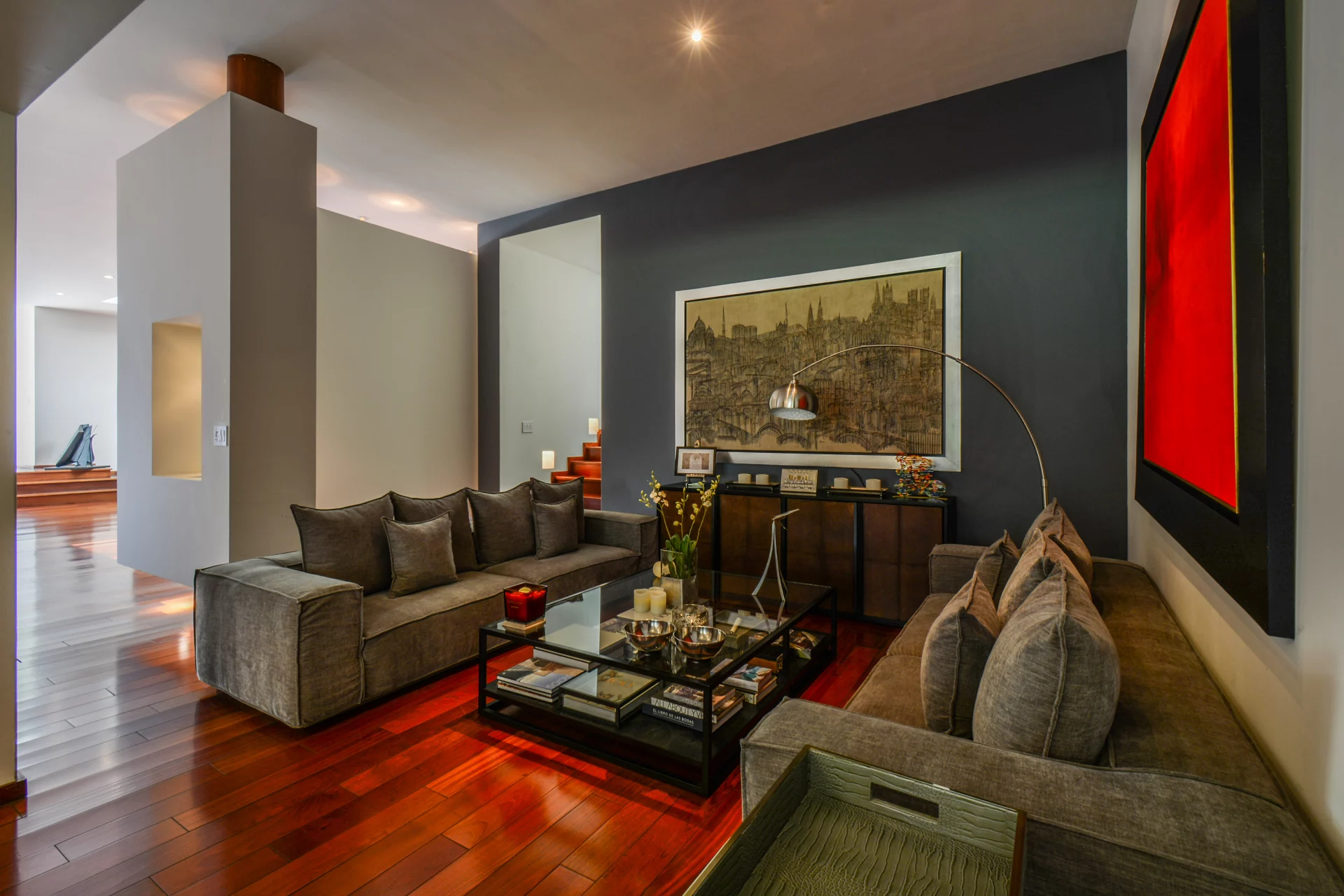Dos salas de TV crean espacios ideales para convivencia familiar y descanso.