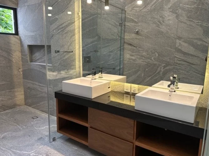 • Recámara principal: doble vestidor, doble lavabo, doble regadera,