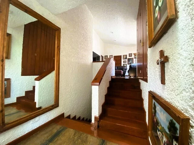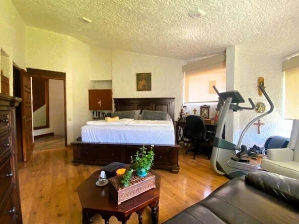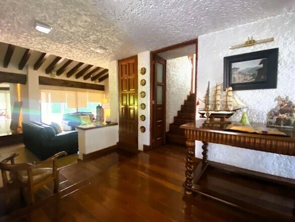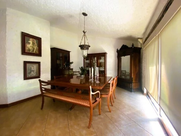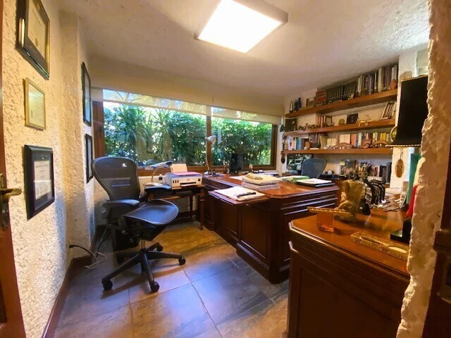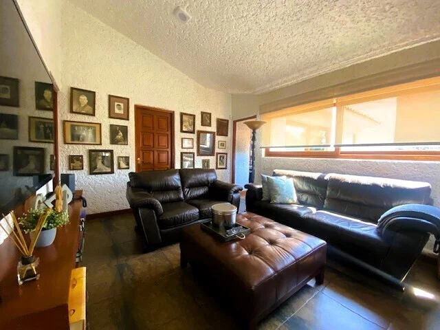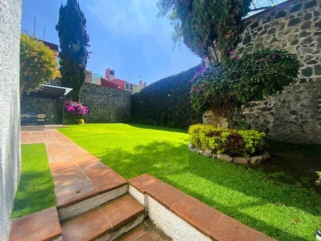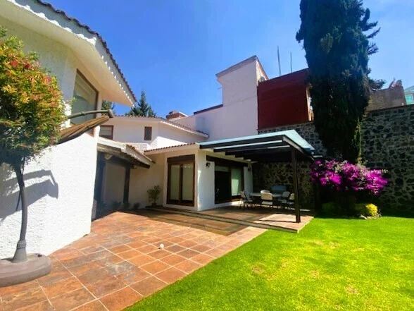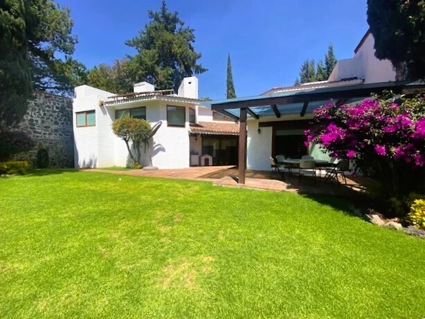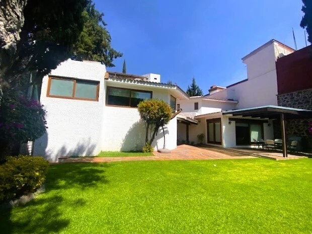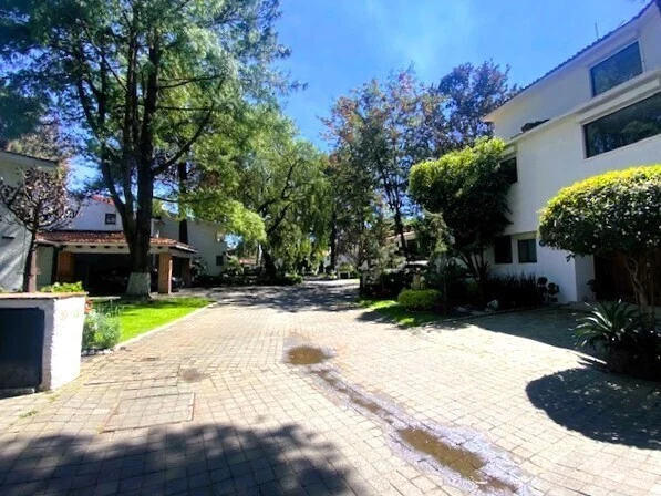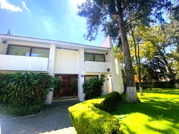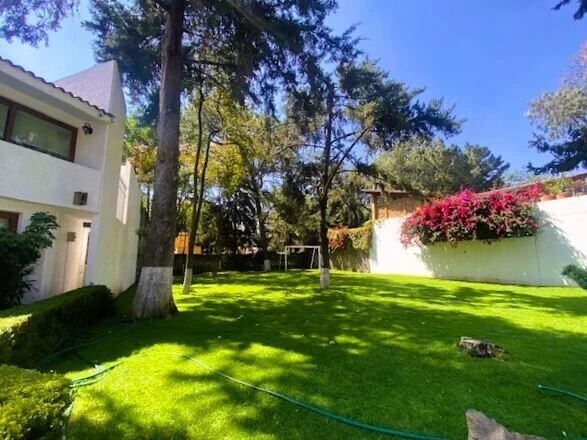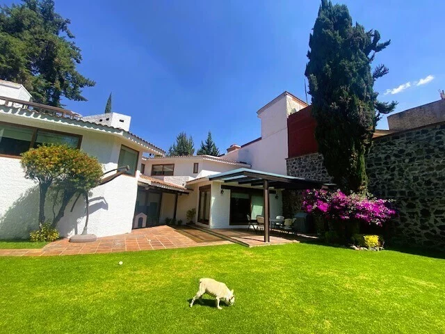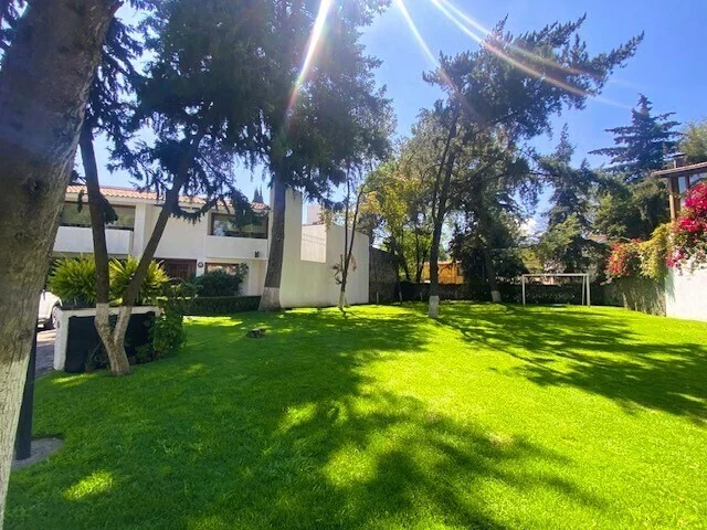 EN PRECIOSO CONDOMINIO DE SOLO 10 CASAS CON LINDAS ÁREAS VERDES. Además del jardín común del condominio, la casa tiene su propio jardín muy grande. Disfruta de esta magnífica casa, que te ofrece espacios muy amplios y acogedores con preciosas vistas verdes desde todos los ángulos. Cuenta con vestíbulo, dos estudios, ante comedor, cocina equipada, sala y comedor con salida a la terraza y al jardín, baño de visitas, recámara principal con baño y vestidor, 3 recámaras, dos de ellas comparten baño y la otra con baño y vestidor, y una sala de tv muy amplia. Tiene estacionamiento para 6 autos (3 de lelos techados), cuarto de servicio y de lavado. ¡INVIERTE EN TU CALIDAD DE VIDA!