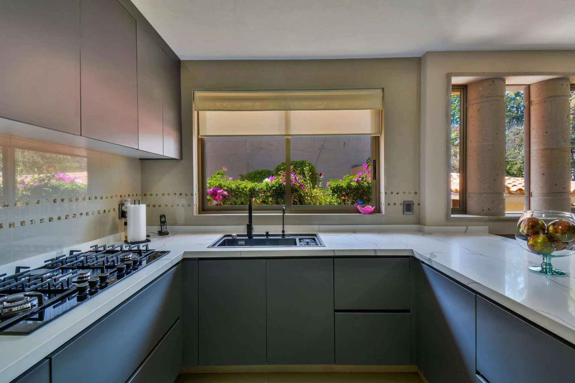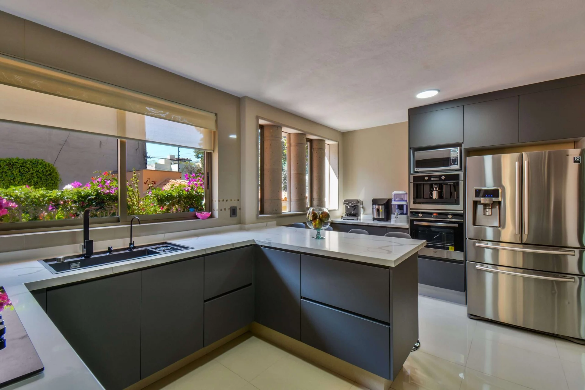 La generosidad de los espacios se muestra aún más en la gran cocina, equipada con una barra que no solo es funcional, sino que también se convierte en un punto de encuentro familiar. Cocinar aquí no será una tarea, sino un placer que podrás compartir con tus seres queridos. La luz natural baña cada área, creando un ambiente acogedor que hará que quiera pasar más tiempo en casa.