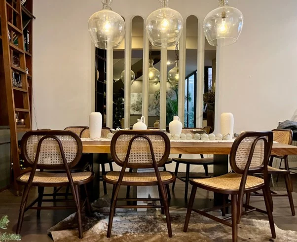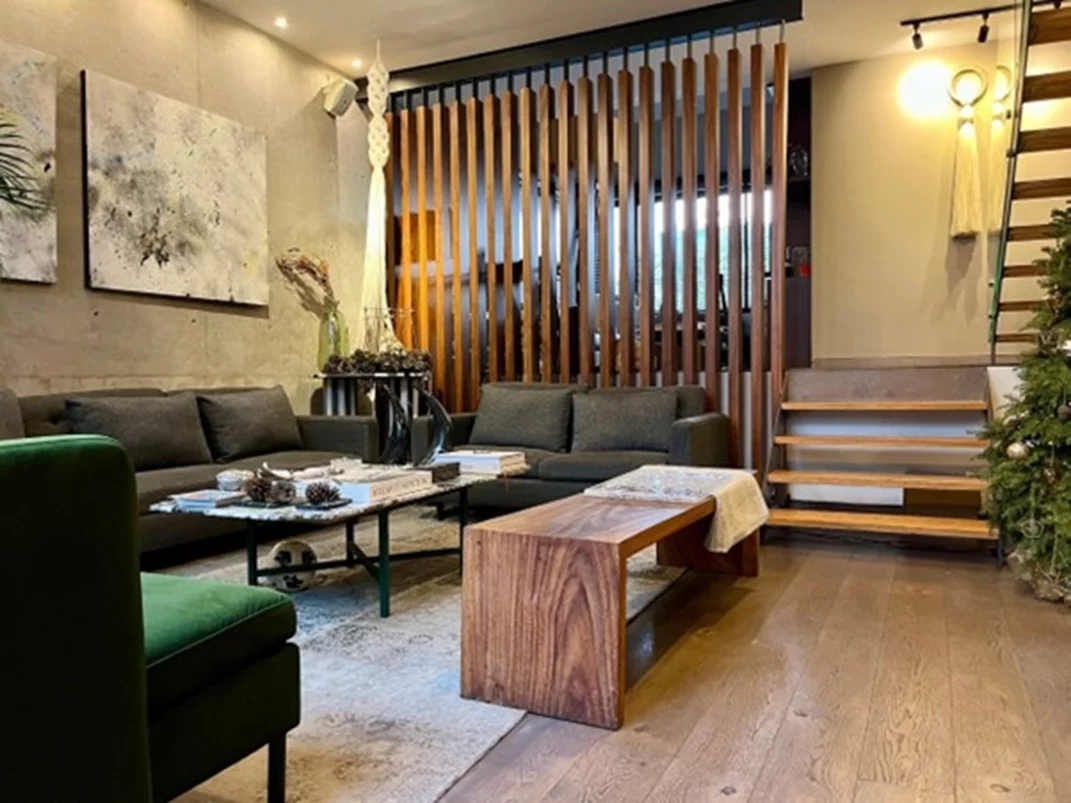 – Sala y comedor independientes en un ambiente amplio, e iluminado con detalles en madera de nogal, terraza, vegetación interior y piezas decorativas únicas.