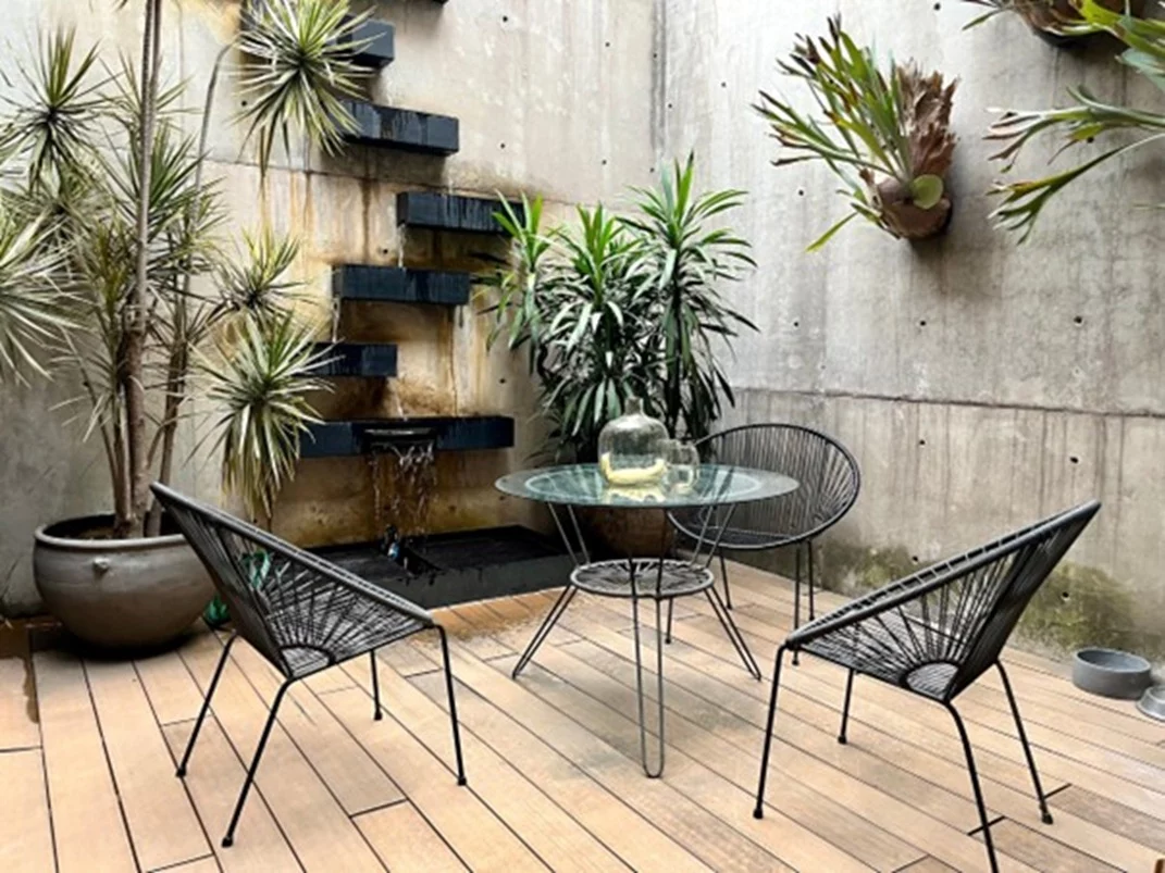 -Tres terrazas espectaculares, cada una con personalidad propia: comedor exterior, rincón de lectura, BBQ, camastros y un patio interior con fuente de agua.