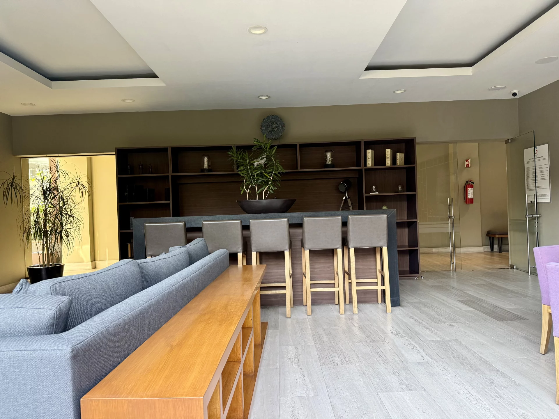 La seguridad es prioridad. Imagina llegar cada día a tu propio oasis, con un sistema de seguridad exclusivo y un lobby elegante que te da la bienvenida. Además, tendrás acceso a amenidades que son simplemente inigualables: un gimnasio completamente equipado, una alberca para relajarte después de un largo día, y un salón de fiestas donde celebrar tus momentos especiales con amigos y familia. Es un entorno diseñado para tu bienestar y disfrute, mucho más que un simple lugar para vivir.