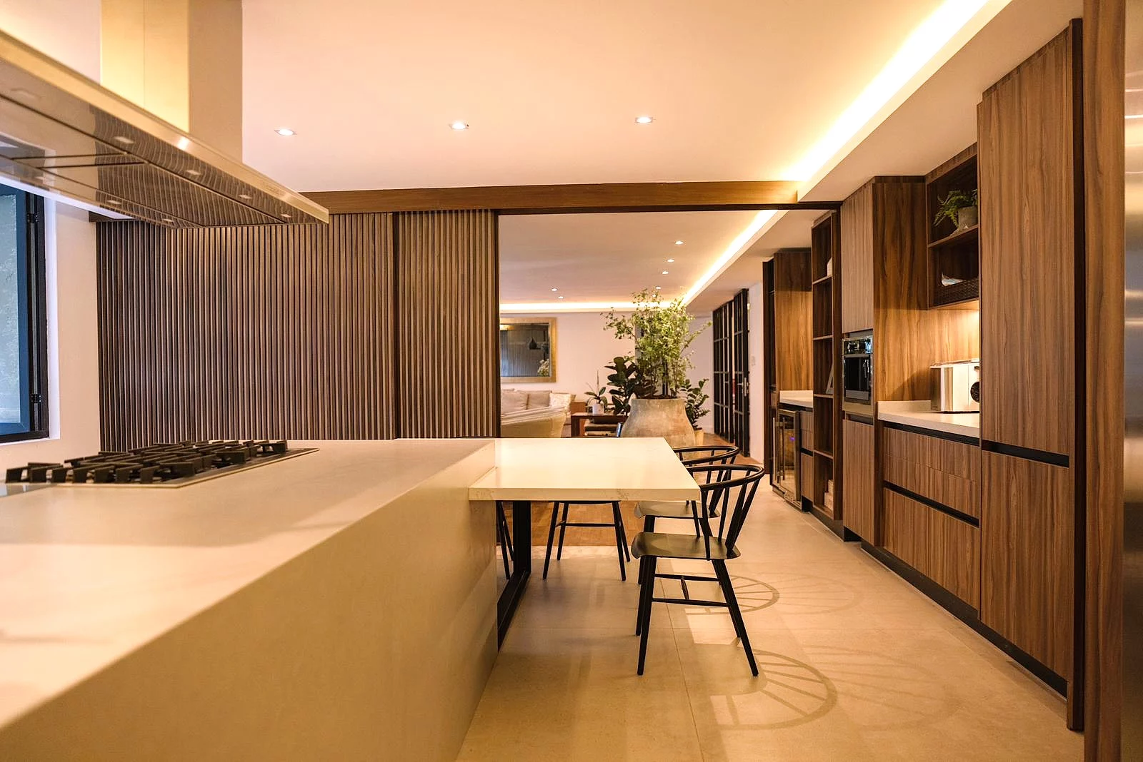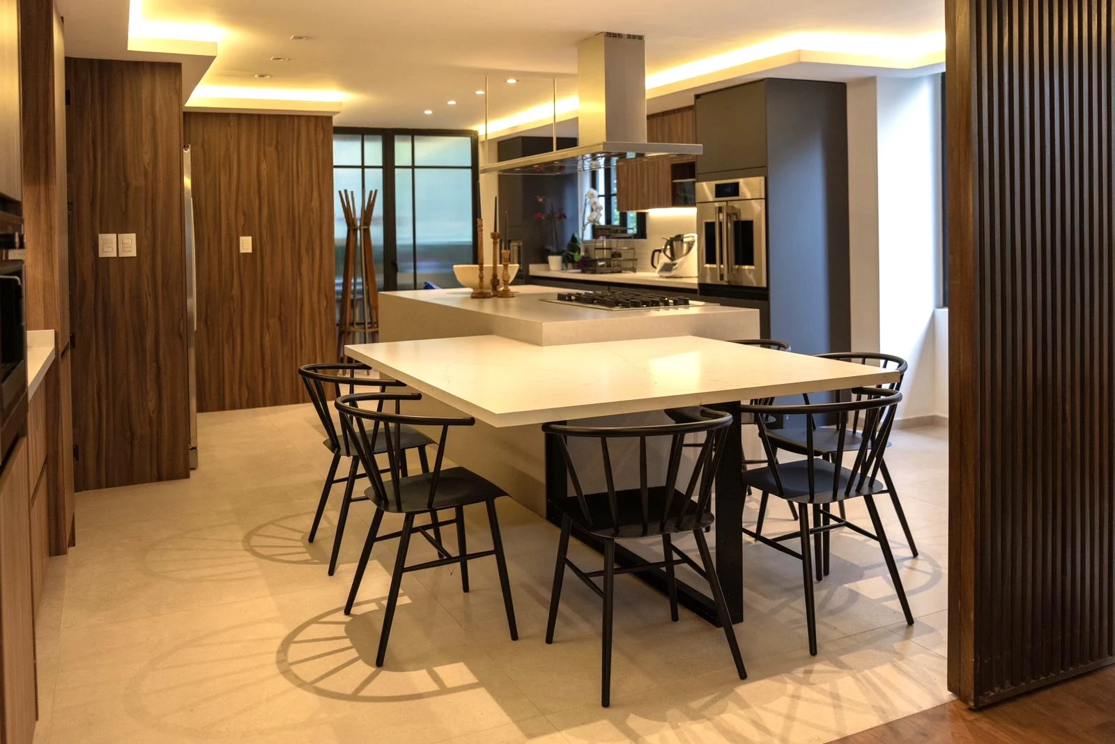 La cocina no es solo espectacular, está completamente equipada y cuenta con un asador externo, ideal para esas cenas al aire libre. Es fácil ver la calidad y el lujo en cada detalle. Las recámaras tienen vestidores y baños individuales, garantizando que cada miembro de la familia tenga su propio espacio para la privacidad.