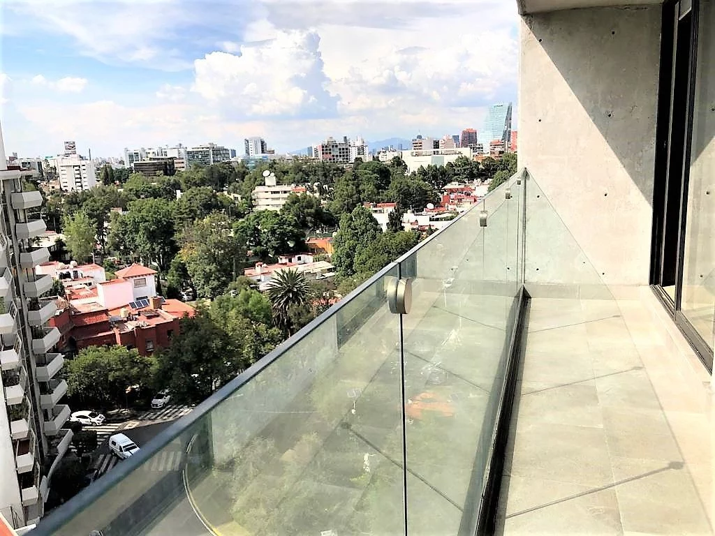 Frente a la glorieta Valverde. Edificio moderno de 10 niveles, con 2 elevadores, salón de eventos y vigilancia las 24 horas. El departamento cuenta con estancia a doble altura, balcón de 5.73M2, cocina con barra desayunador, recámara principal con baño y vestidor, 2a recámara con armario y baño compartido con área social, sala de tv, terraza en azotea de 90.11 M2, 2 estacionamientos y bodega de 3M2.