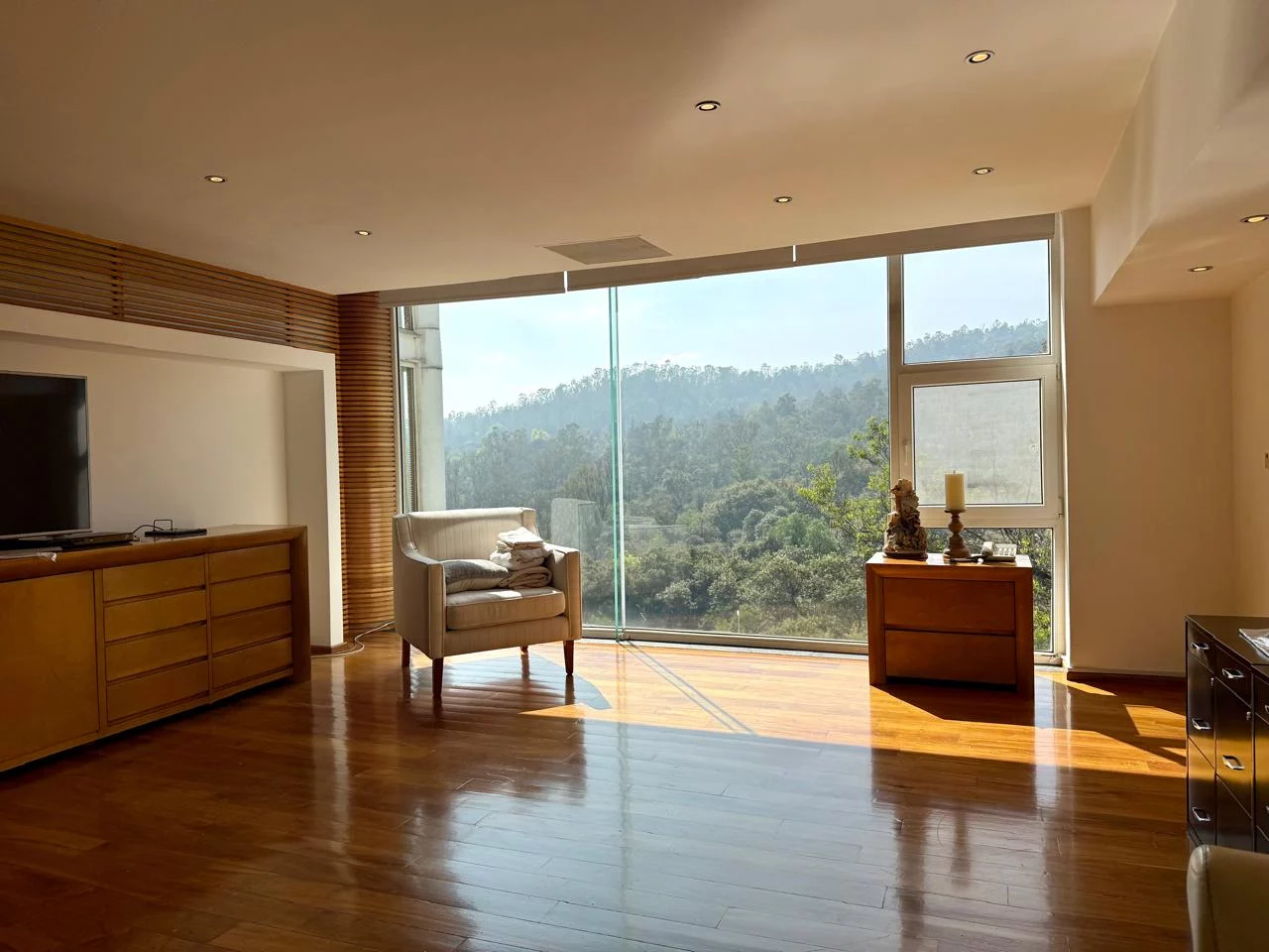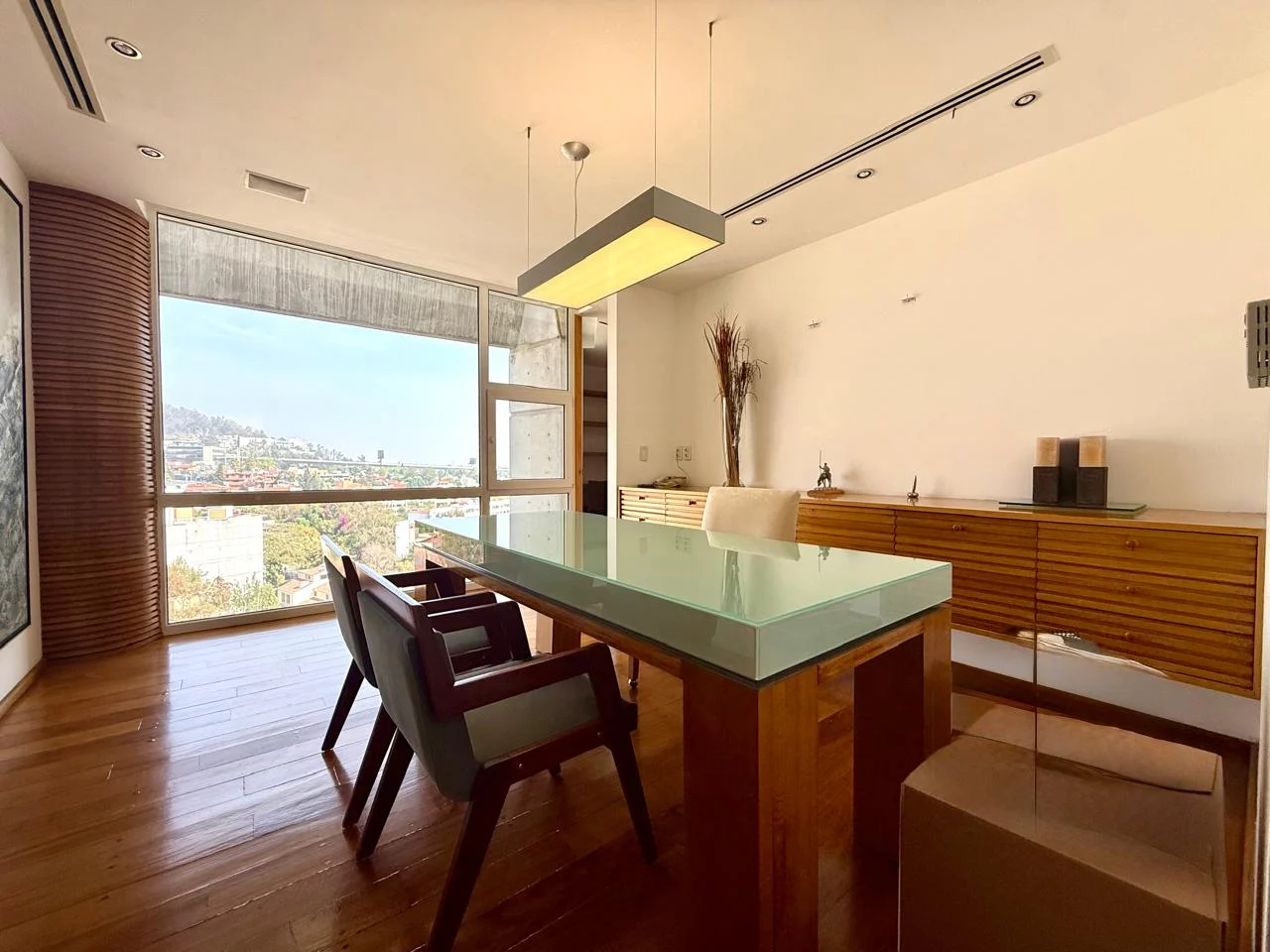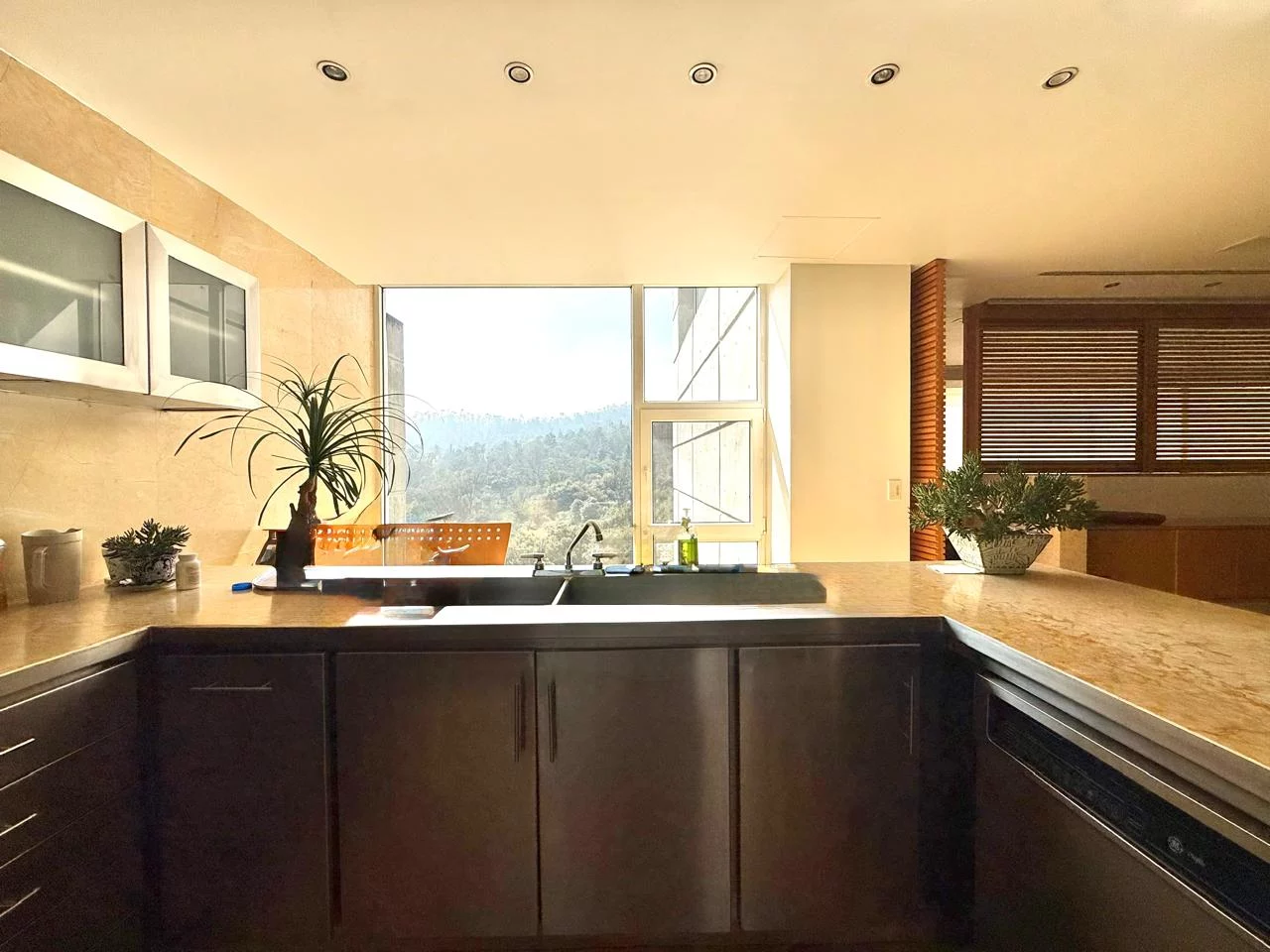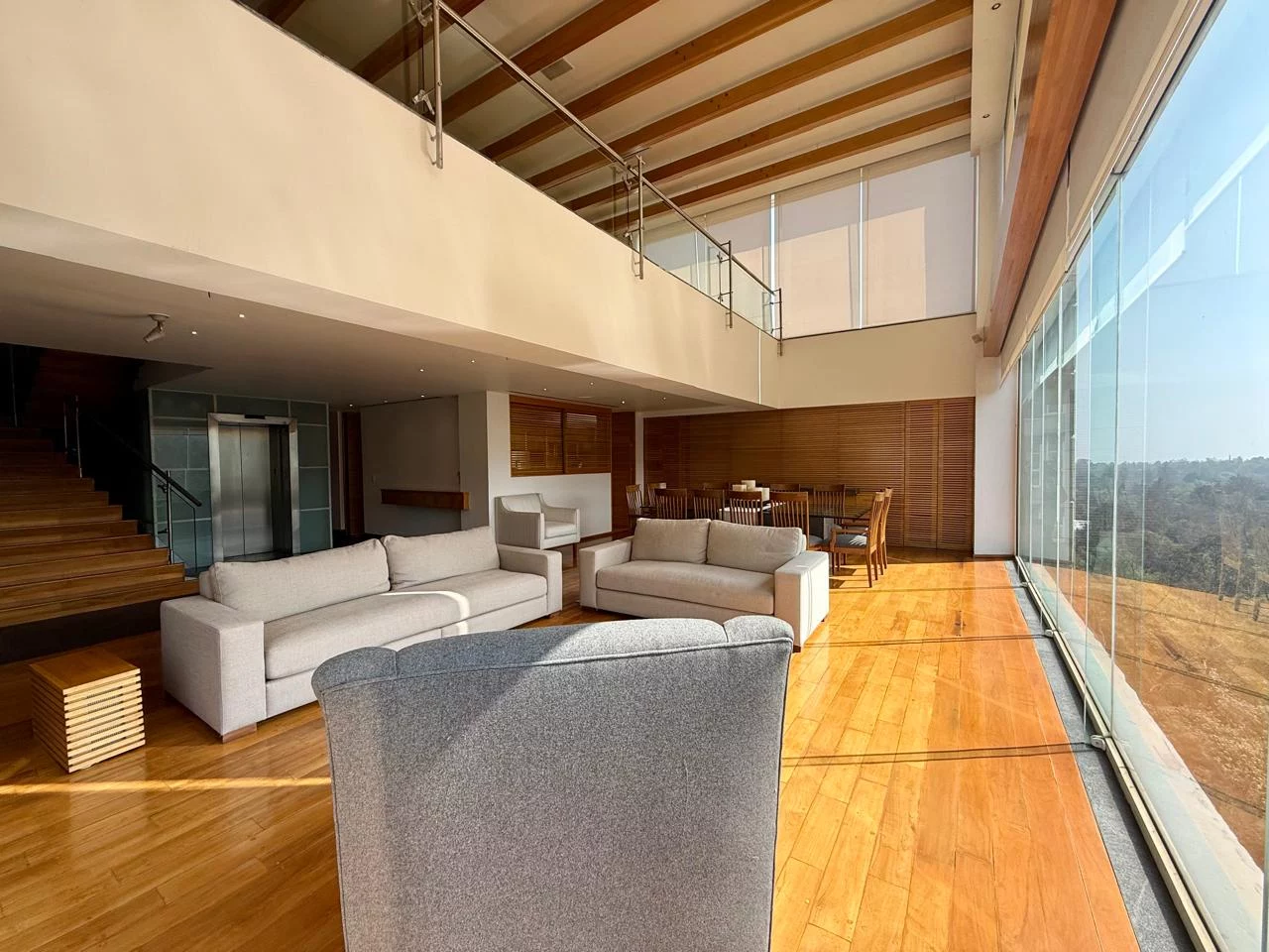 Al entrar, el elevador te lleva directamente al corazón del hogar, donde un gran vestíbulo te recibe. La sala y el comedor, con su impresionante doble altura, son el escenario perfecto para compartir momentos especiales. ¿Y qué tal esa vista espectacular al bosque de Tlalpan? Cada día te recordará la belleza de la naturaleza, dándote ese toque de serenidad que todos necesitamos. La cocina, completamente equipada, no solo es funcional, sino que también te invita a ser el chef de tus propias celebraciones. Con un ante comedor acogedor, podrás disfrutar de desayunos y cenas con la familia. Además, el medio baño de visitas garantiza que tus amigos se sientan cómodos sin interrumpir la intimidad de tu hogar.
