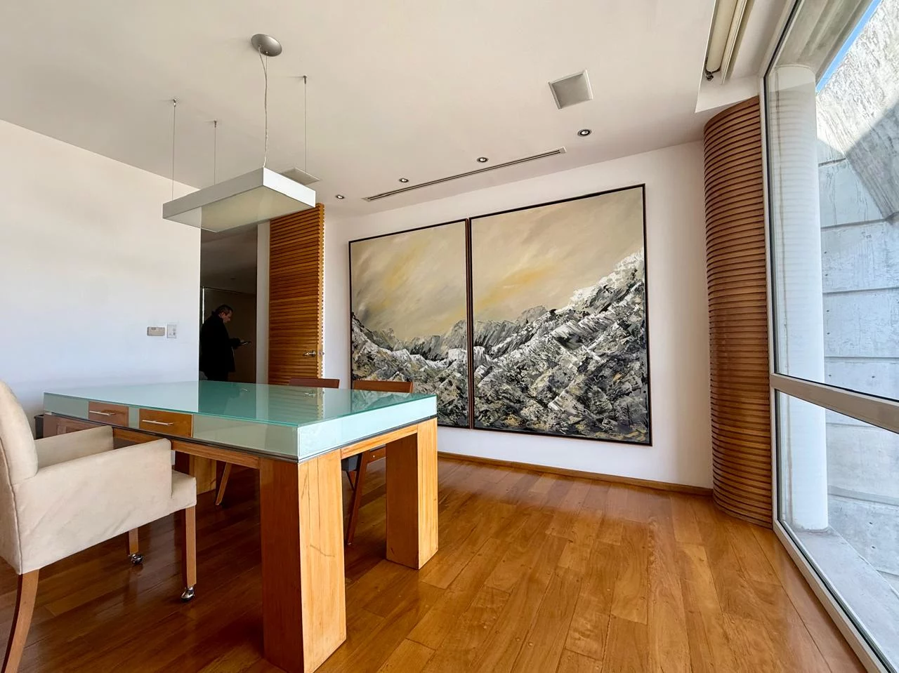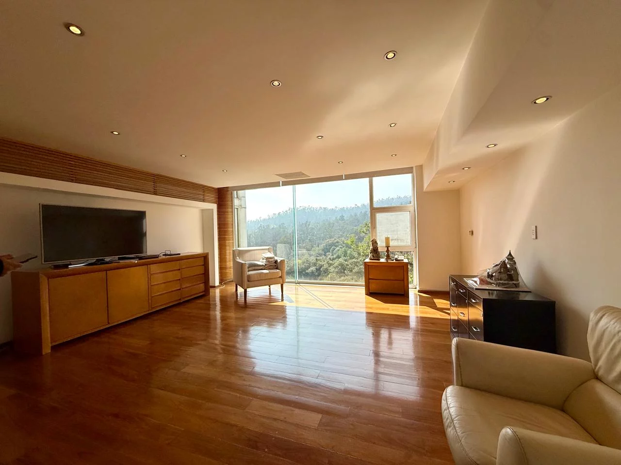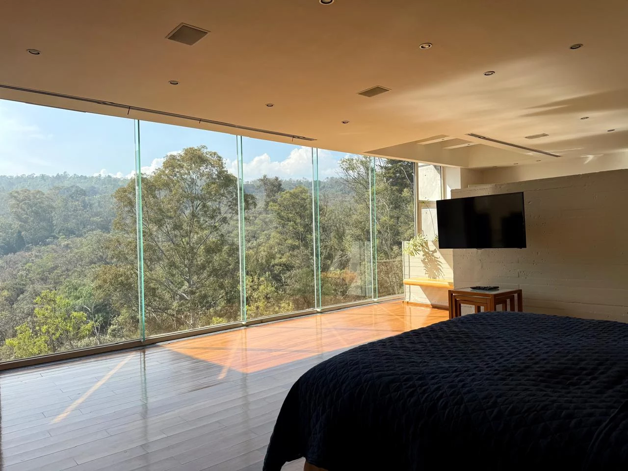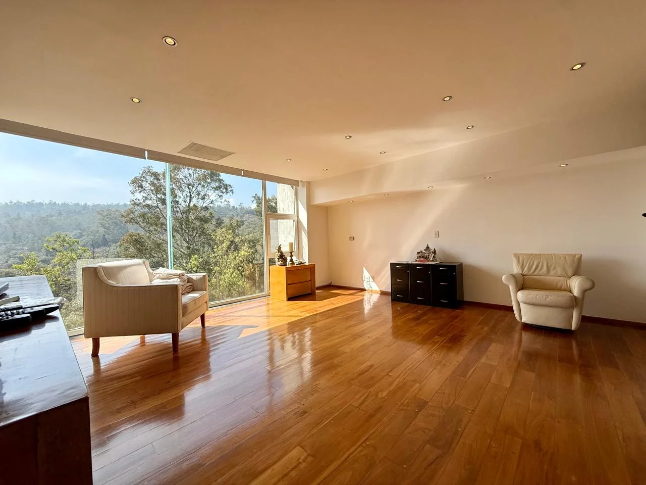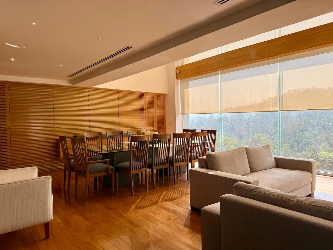Al entrar, el elevador te lleva directamente al corazón del hogar, donde un gran vestíbulo te recibe. La sala y el comedor, con su impresionante doble altura, son el escenario perfecto para compartir momentos especiales. ¿Y qué tal esa vista espectacular al bosque de Tlalpan? Cada día te recordará la belleza de la naturaleza, dándote ese toque de serenidad que todos necesitamos. La cocina, completamente equipada, no solo es funcional, sino que también te invita a ser el chef de tus propias celebraciones. Con un ante comedor acogedor, podrás disfrutar de desayunos y cenas con la familia. Además, el medio baño de visitas garantiza que tus amigos se sientan cómodos sin interrumpir la intimidad de tu hogar.