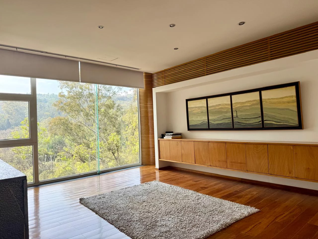 Siguiendo con los espacios, el gran family room y el estudio son ideales para trabajar o relajarte en un ambiente equilibrado. Dos amplias recámaras, cada una con baño y vestidor, aseguran que todos en la familia tengan su santuario personal. Y, si necesitas un espacio para el servicio, el cuarto de servicio con baño y área de lavandería te proporciona la comodidad que buscas.Pero aquí no termina la magia. En la planta alta, te espera un gran salón de juegos con bar, desde donde podrás disfrutar de esa misma vista espectacular al bosque. Imagina las noches de diversión entre amigos y familiares. Y, para los momentos de tranquilidad, la terraza de 20 metros cuadrados es el lugar perfecto para tomar el sol o saborear un café al aire libre.