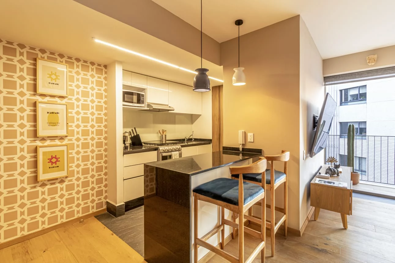 La cocina abierta se conecta con la estancia, perfecta para disfrutar cada momento —desde el café de la mañana hasta una cena con amigos.