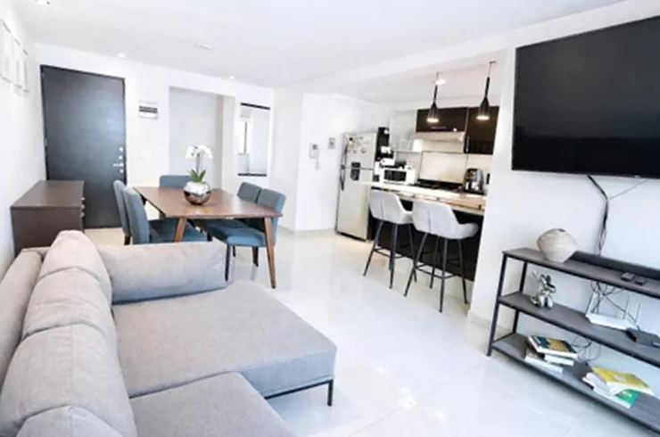Exclusivo departamento exterior con balcón en el corazón y la mejor zona de la Colonia Tlacoquemecatl del Valle. Vive la experiencia de un hogar que combina diseño contemporáneo, amplitud y una ubicación excepcional. Este exclusivo departamento exterior de 106m² y en primer nivel, ofrece espacios generosos, iluminación natural y una distribución pensada para quienes valoran la privacidad y el confort. La zona social conecta a un balcón exterior con ventanería alemana, medio baño de visitas. La cocina de concepto abierto, con barra desayunador, el área de lavado discretamente integrada.