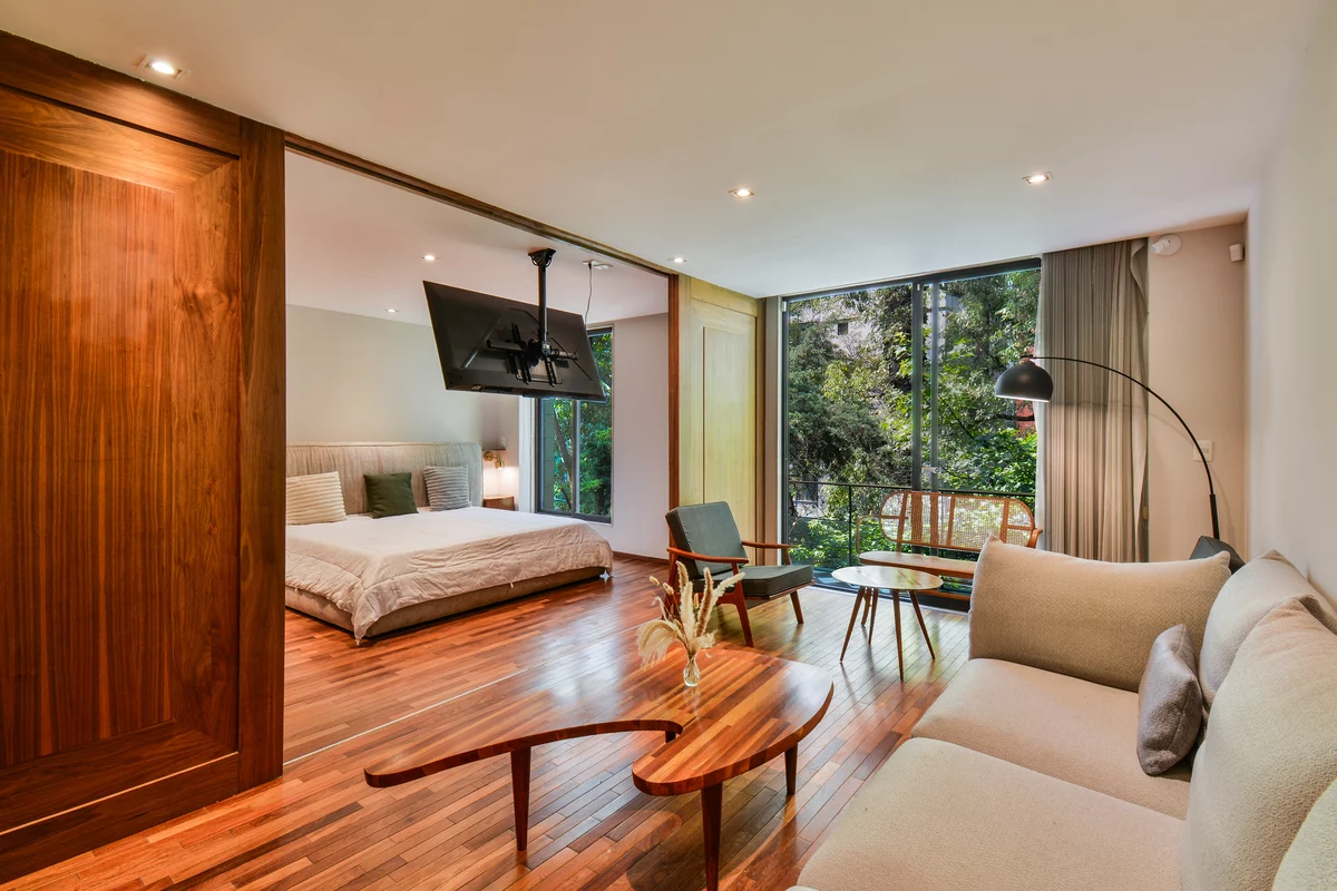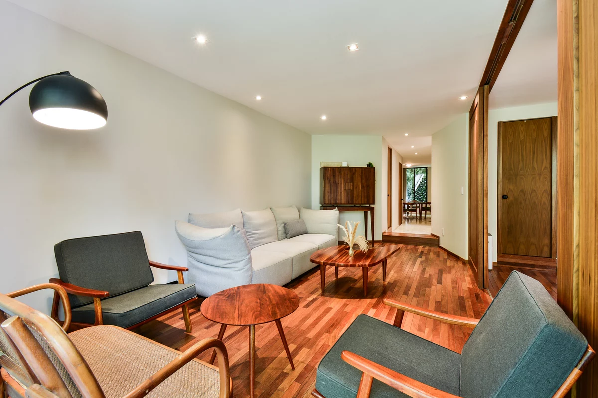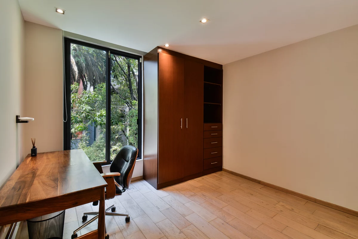 HERMOSO DEPARTAMENTO EN EXCLUSIVO EDIFICIO DE SÓLO TRES DEPARTAMENTOS. TE OFRECE SEGURIDAD, COMODIDAD Y UN ESTILO DE VIDA PRIVILEGIADO. Cuenta con muy buena ubicación y acceso rápido a vías principales como Patriotismo y Eje 4 Poniente, lo que te da una total movilidad a cualquier parte de la ciudad. El departamento es exterior y está distribuido en dos plantas, en planta baja cuenta con vestíbulo, amplia sala y comedor con salida a una terraza, cocina totalmente equipada con isla de granito, balcón y recámara principal con clóset y baño. Áreas de servicio. En segundo nivel, encontrarás dos recámaras adicionales. La primera con vestidor y baño. La segunda con clóset y baño. El departamento incluye un estacionamiento compartido y una bodega.
