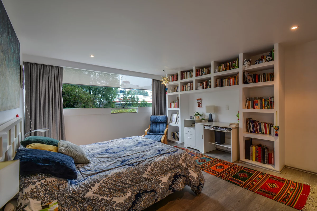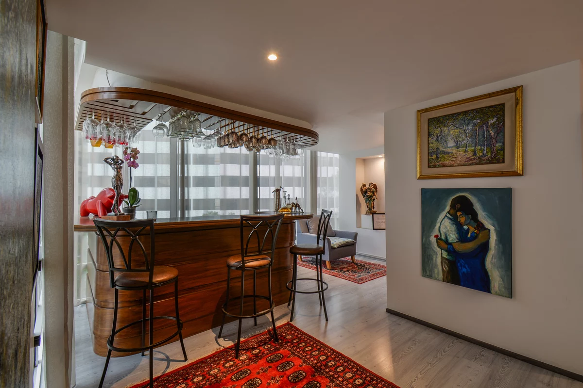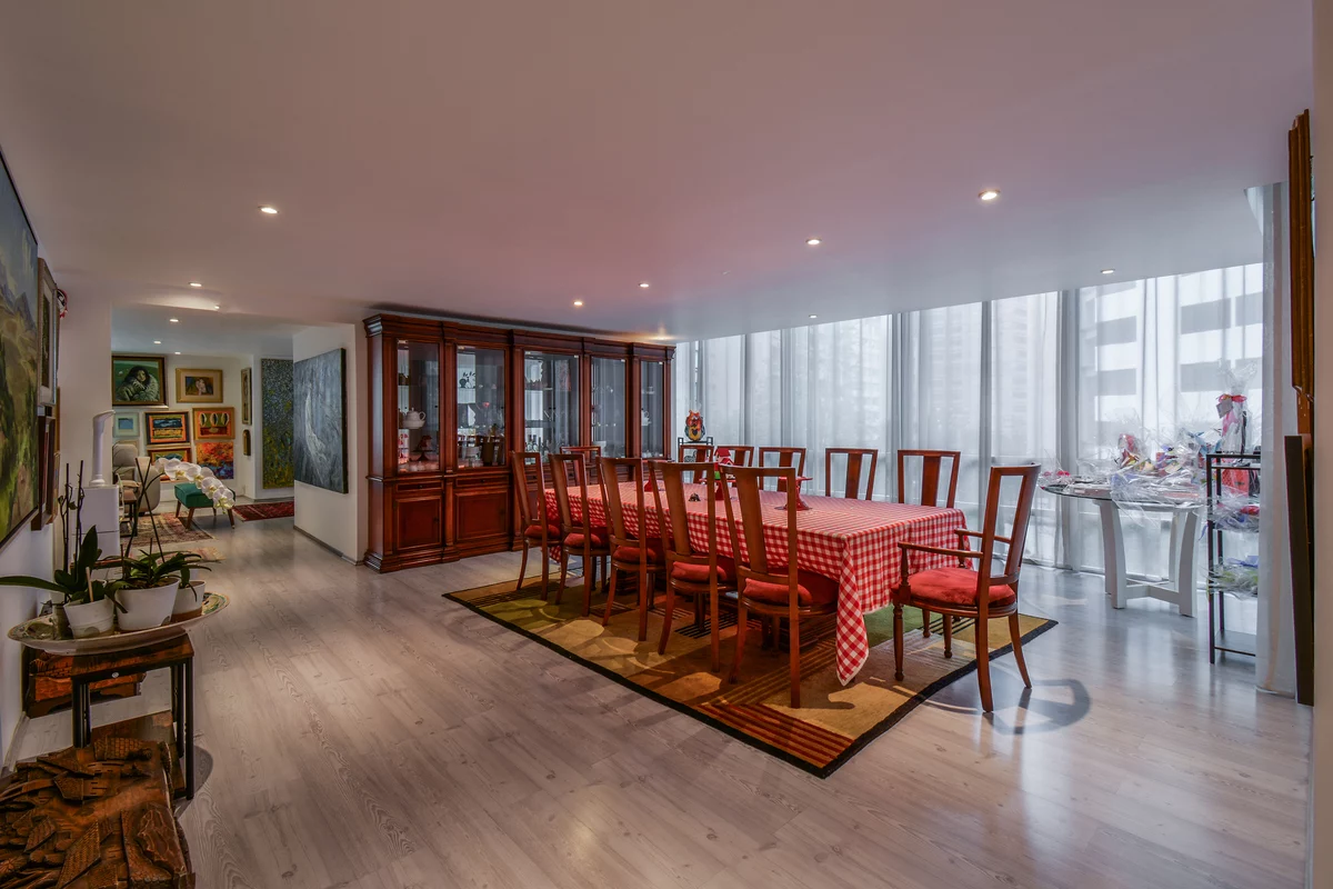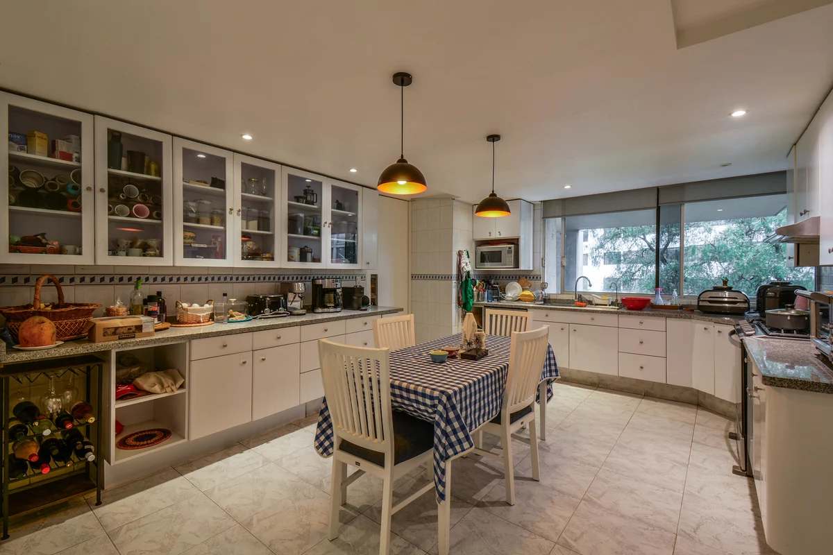 Precioso departamento remodelado hace 6 años, cerca de Periférico y avenidas importantes. Único y exclusivo departamento con amplios e iluminados espacios y con elevador al piso. Sala, comedor y family, con vistas arboladas y agradable terraza que te permitirán gozar de grandes momentos familiares. Con 3 amplias recámaras cada una con baño, ventilación natural y vestidor, la recámara principal cuenta con doble vestidor. Áreas de servicio, bodega, 4 estacionamientos, el edificio cuenta dos elevadores, jardín y salón de eventos en área común, planta de luz y vigilancia 24 hrs.