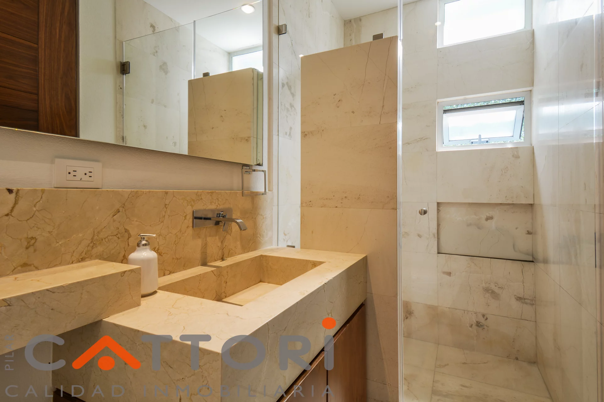 Imagina recibir a tus amigos en tu sala comedor, donde cada comida se convierte en una celebración. La cocina equipada no sólo es funcional, es un espacio donde la creatividad culinaria cobra vida. Y cuando quieras relajarte, tu sala de TV te espera, un refugio acogedor donde las risas y las películas se entrelazan.Cada habitación de este departamento ha sido pensada para ofrecerte lo mejor. La recámara principal tiene un baño en suite y un vestidor que te hará sentir como un verdadero rey o reina. Y la segunda recámara, con su propio baño, es perfecta para tus seres queridos o incluso como un elegante espacio de trabajo. Y no te olvides del cuarto de servicio y de lavado, integrados de manera inteligente para tu comodidad.