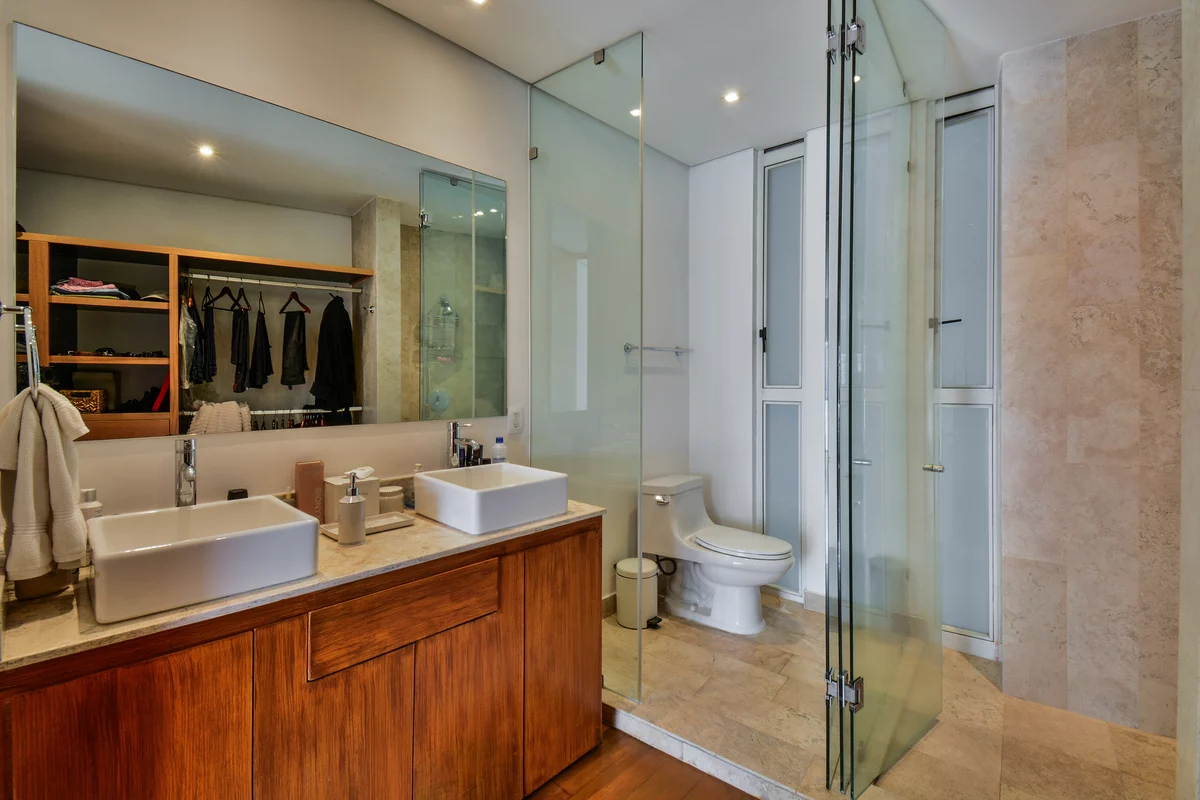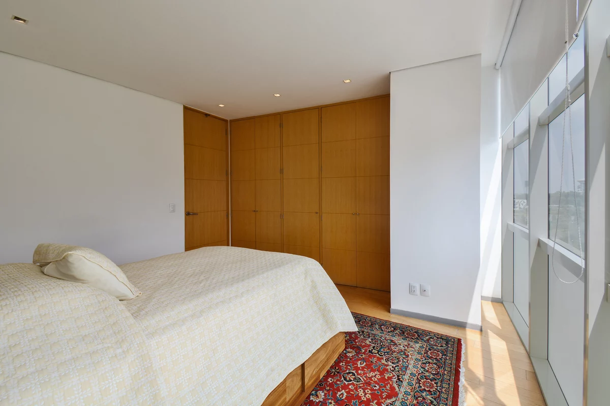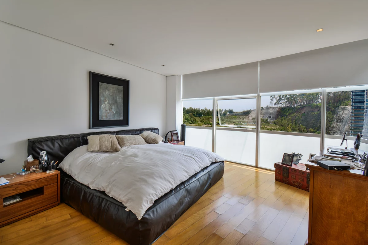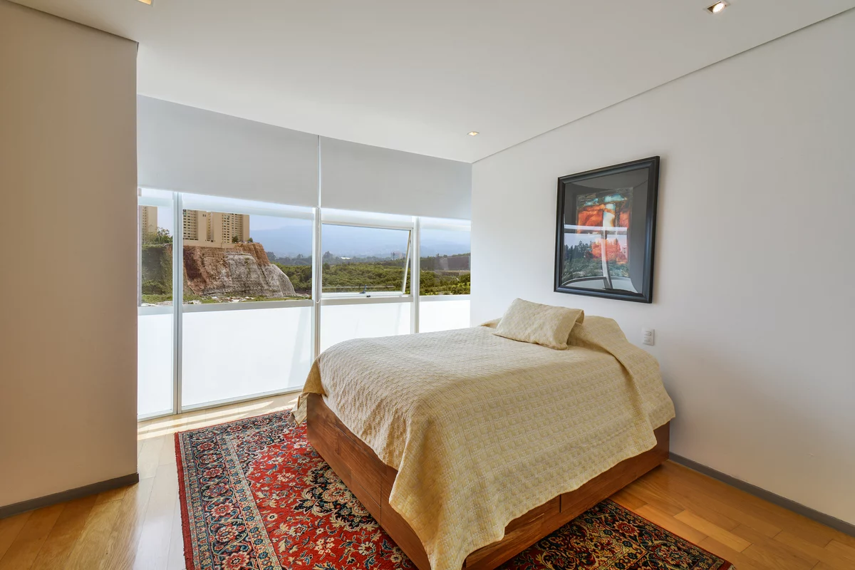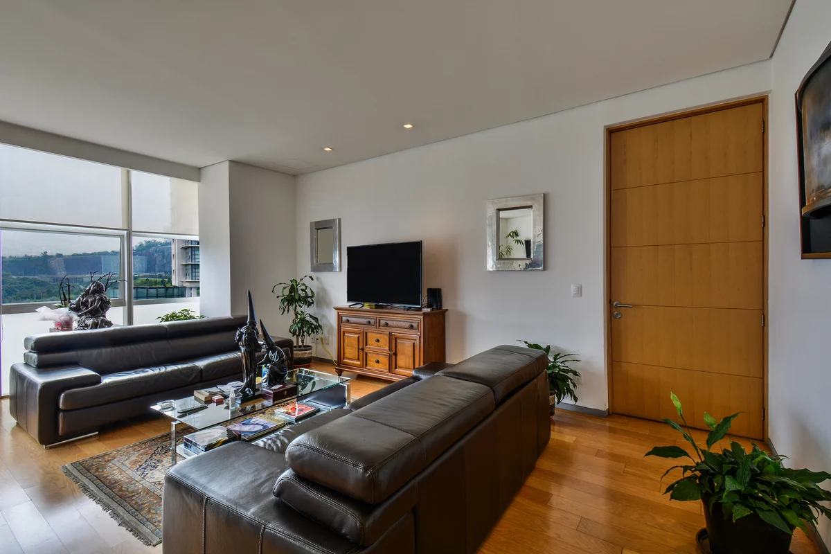 ¡APROVECHA! VENTA DEPARTAMENTO EN RESIDENCIAL SANTA FE, MUY CERCA DEL PARQUE LA MEXICANA. Departamento en piso 11 de la torre B, con espacios grandes, excelente ventilación y luz natural. Cuenta con gran sala comedor con ventanales de piso a techo con muy bonita vista, recámara principal con baño y vestidor, 2a recámara con closet que comparte baño con área social, cocina equipada, área de lavado, cuarto de servicio, 2 bodegas y 2 estacionamientos.
