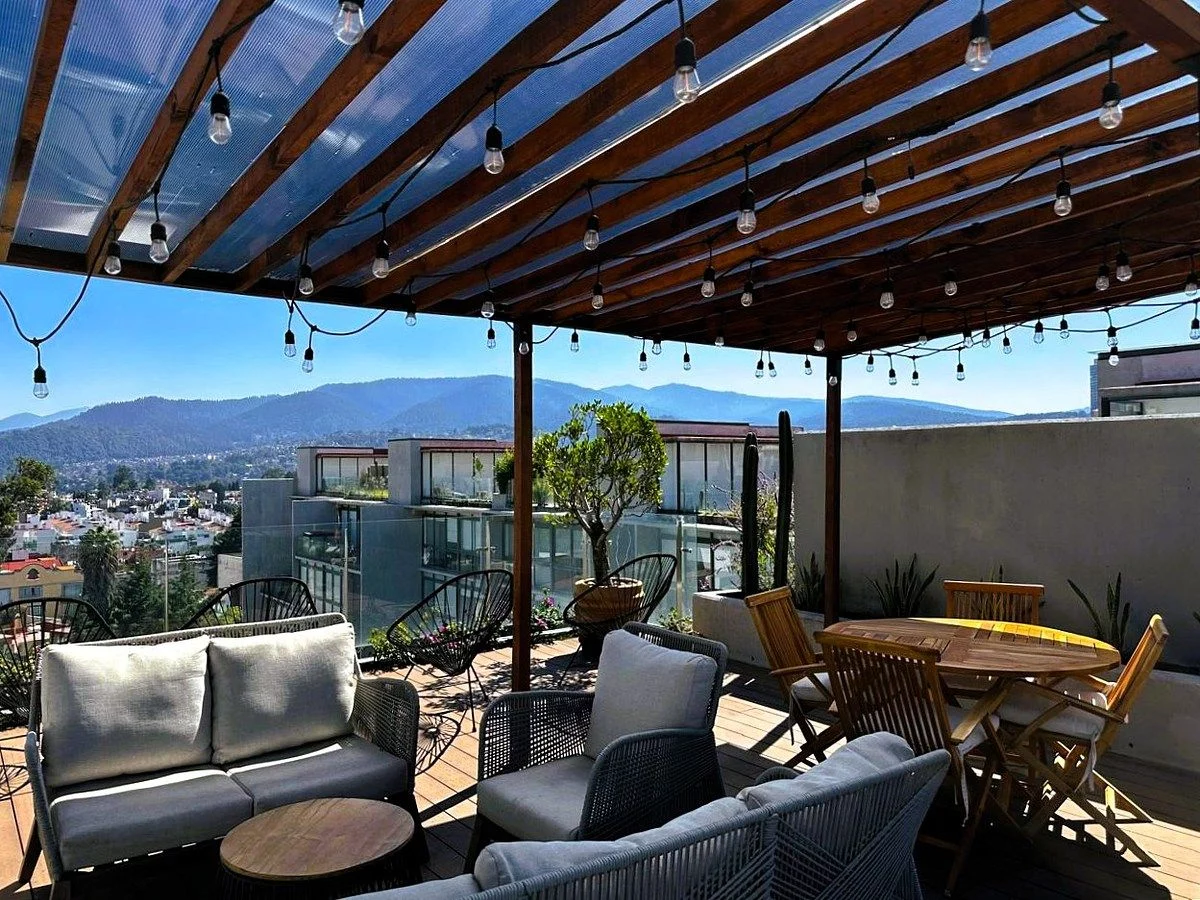 En el segundo nivel se encuentra un rooftop privado con velaría, perfecto para reuniones sociales, momentos de descanso o disfrutar del exterior con total privacidad.