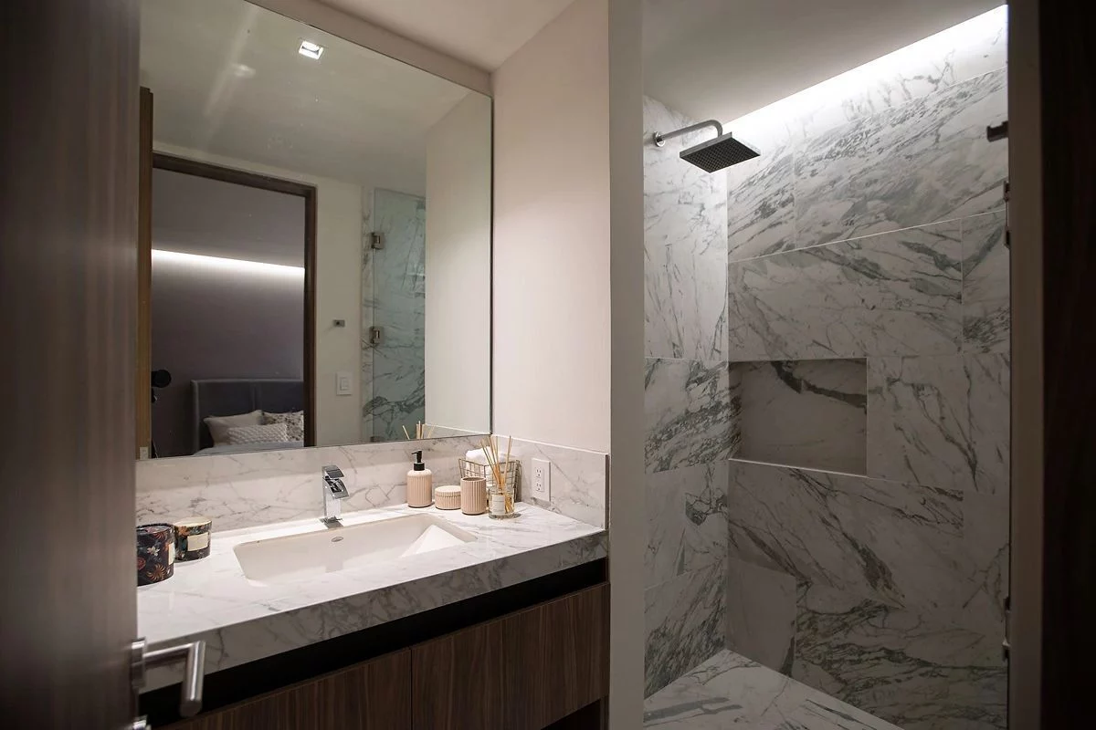 Los departamentos de la Torre B constan de sala, comedor, cocina abierta, área de lavado, de 1 a 4 recámaras, de 1 a 3 baños, algunos con terraza con vista panorámica ó family room, y dos a tres lugares de estacionamientos cubiertos.