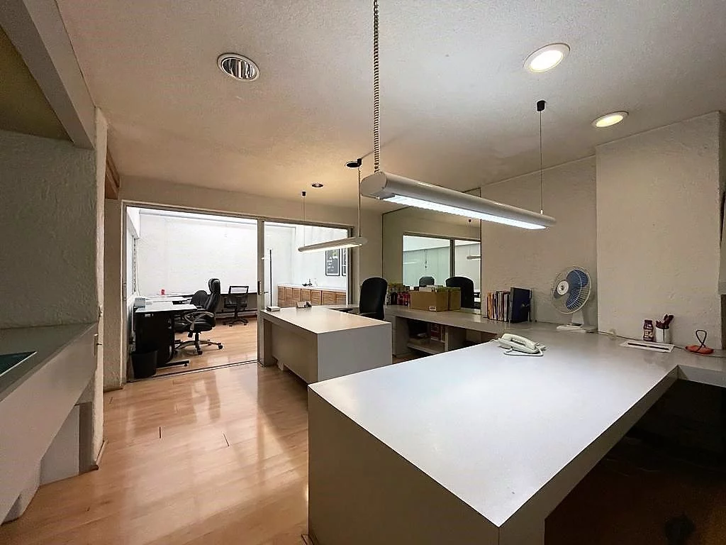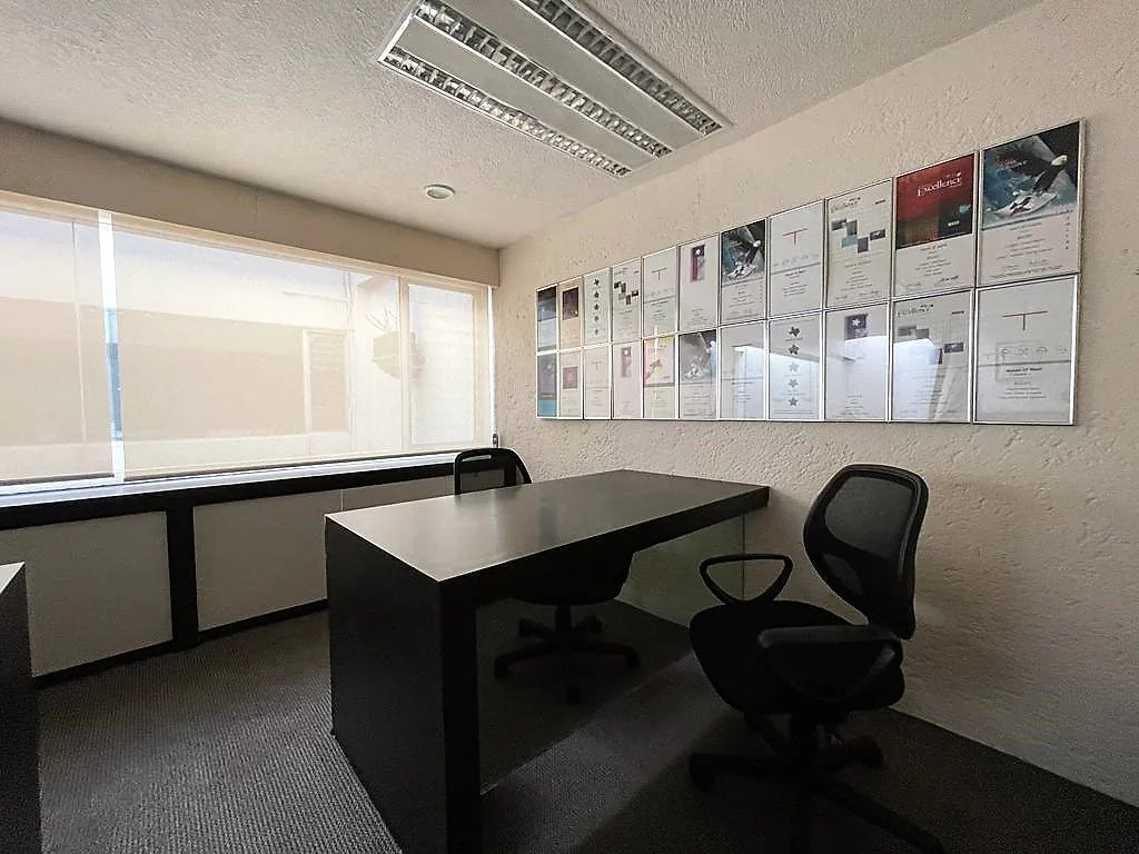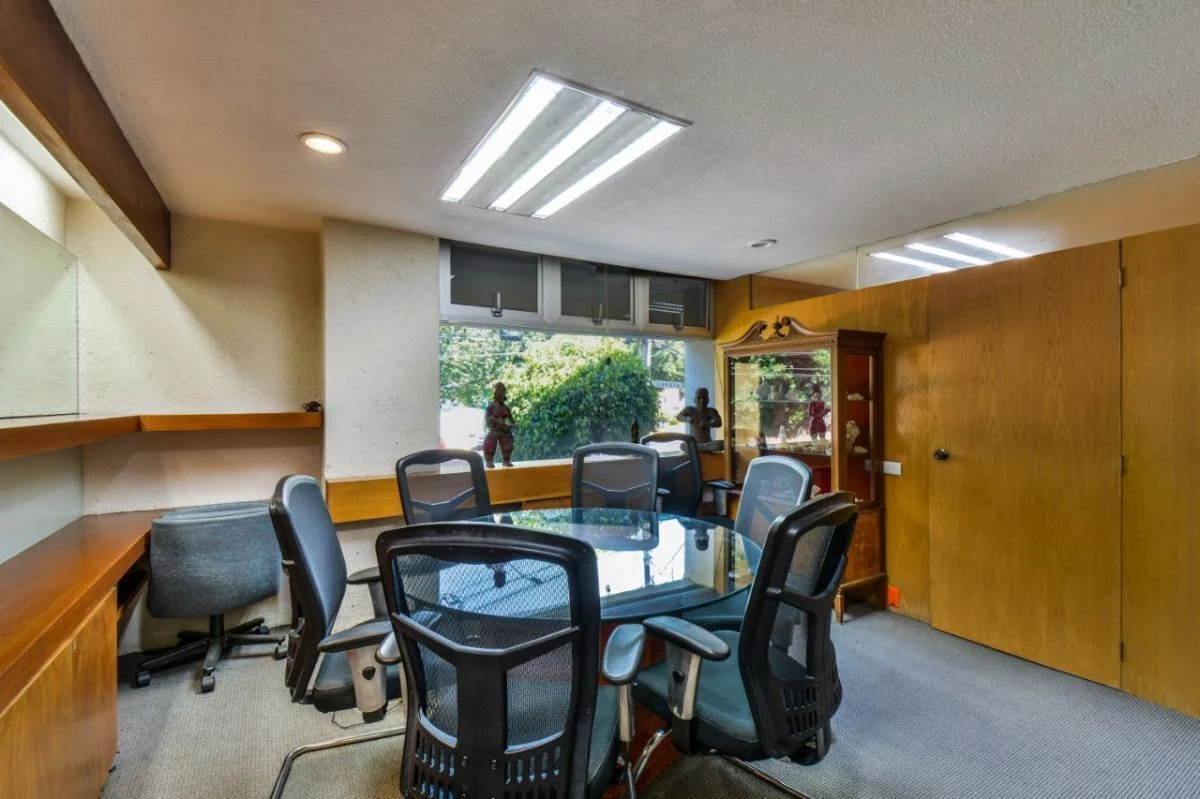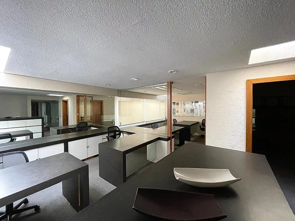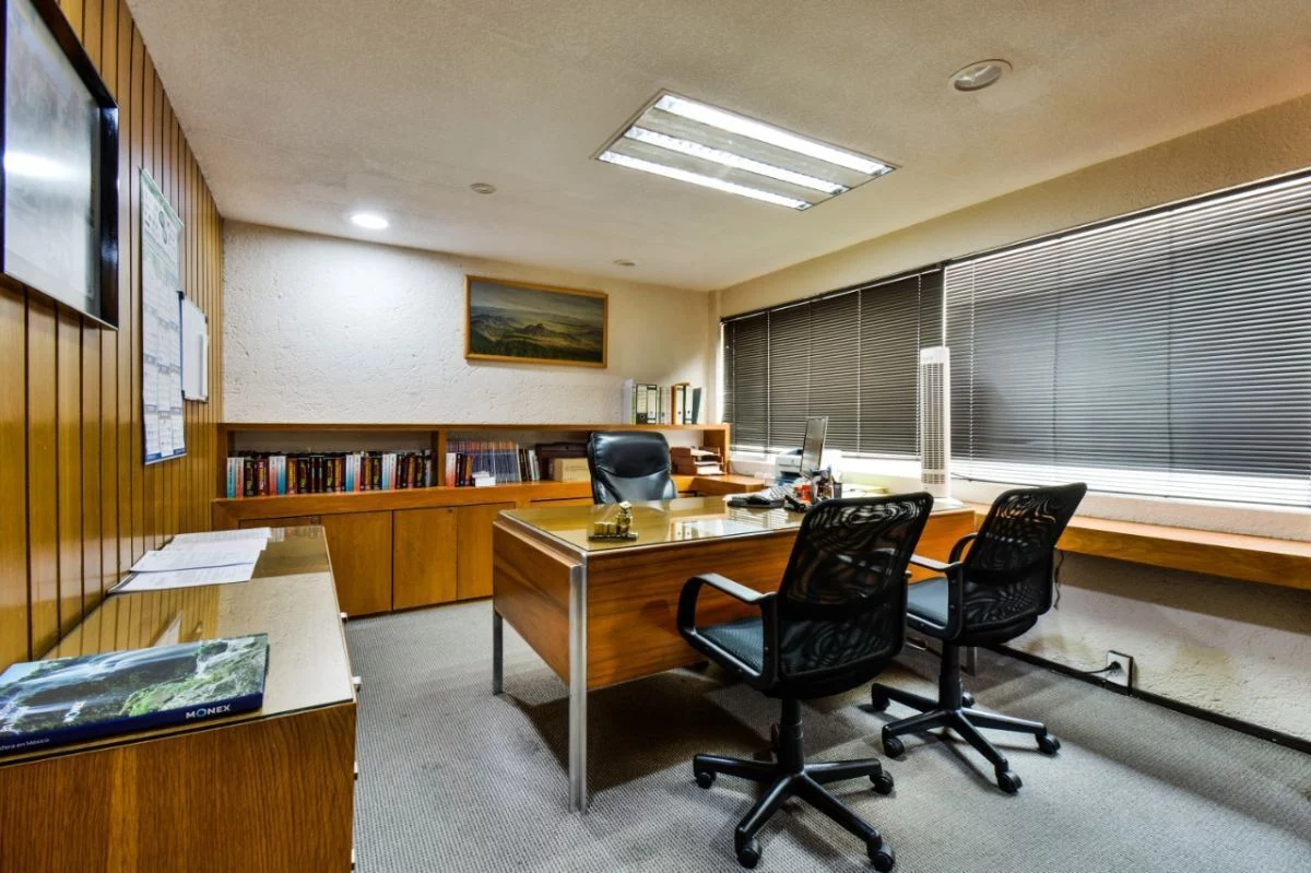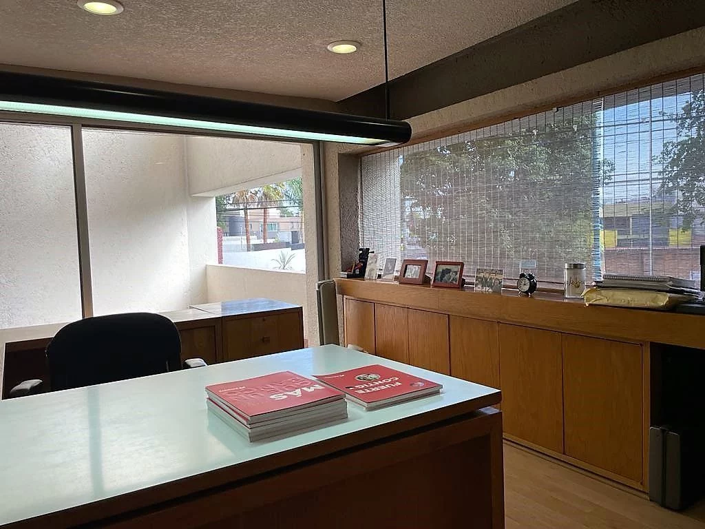 En planta baja, consta de amplio estacionamiento para 24 autos, caseta de vigilancia, y área de archivo. En primer nivel, recepción, 16 privados, 6 baños, cocineta, 3 cuartos de archivo y patio interior. En segundo nivel, sala de juntas, 2 baños de uso común, y dos privados grandes cada uno con baño. Cuenta con CCTV y sistema de intercomunicación.