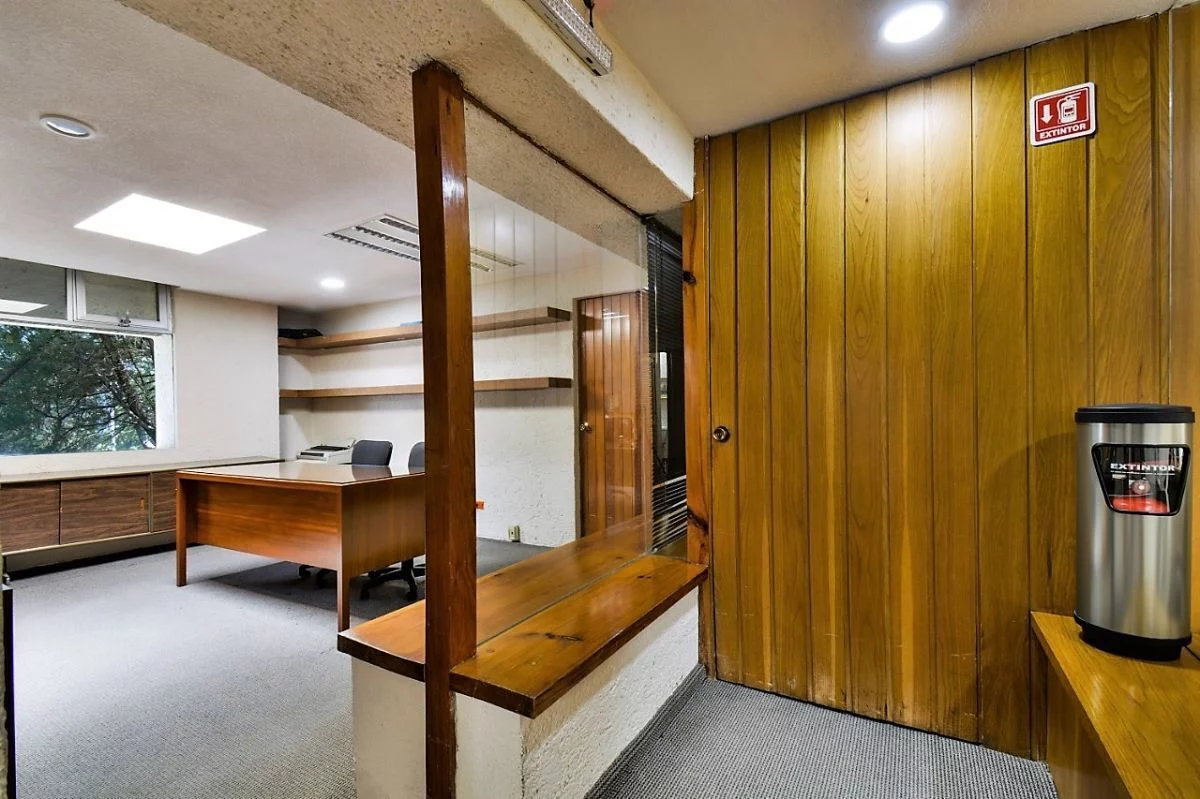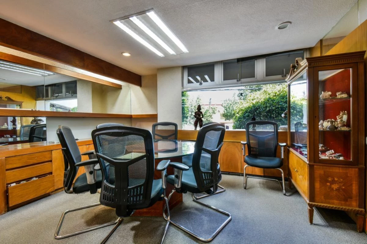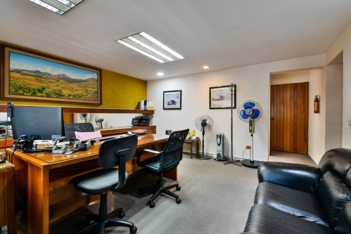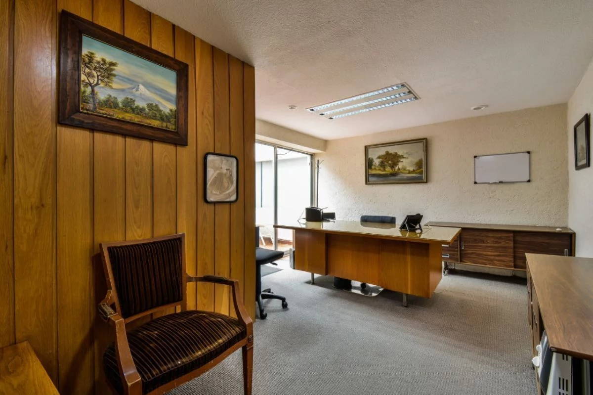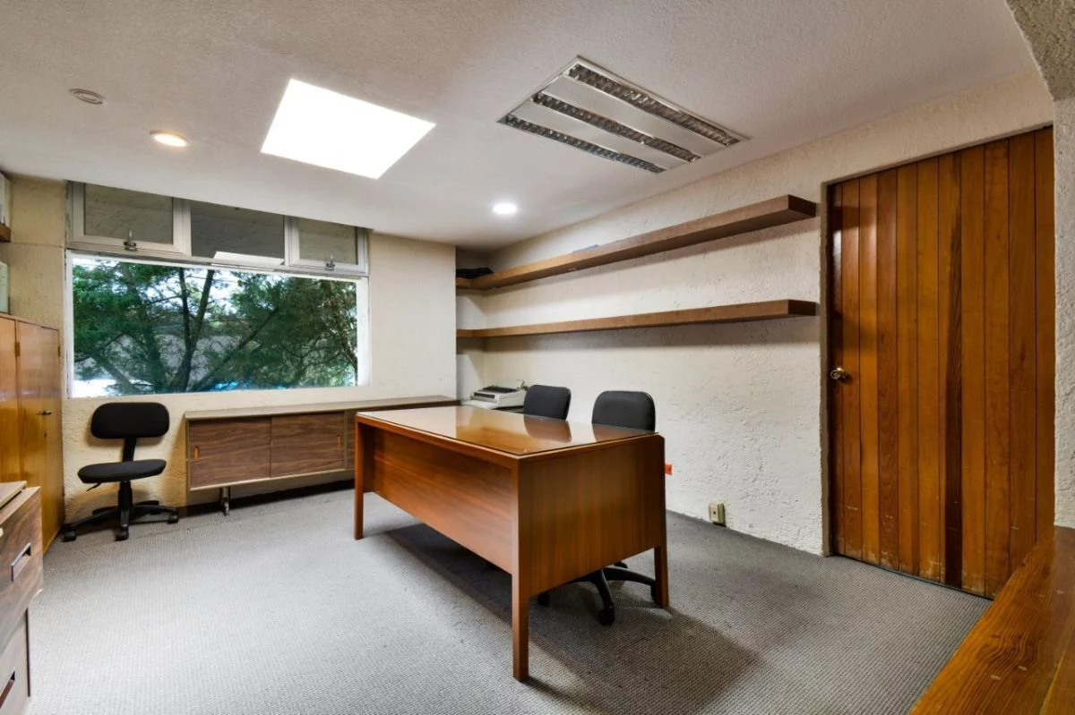 En planta baja, consta de amplio estacionamiento para 24 autos, caseta de vigilancia, y área de archivo. En primer nivel, recepción, 16 privados, 6 baños, cocineta, 3 cuartos de archivo y patio interior. En segundo nivel, sala de juntas, 2 baños de uso común, y dos privados grandes cada uno con baño. Cuenta con CCTV y sistema de intercomunicación.