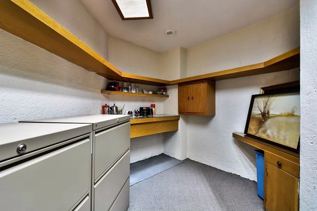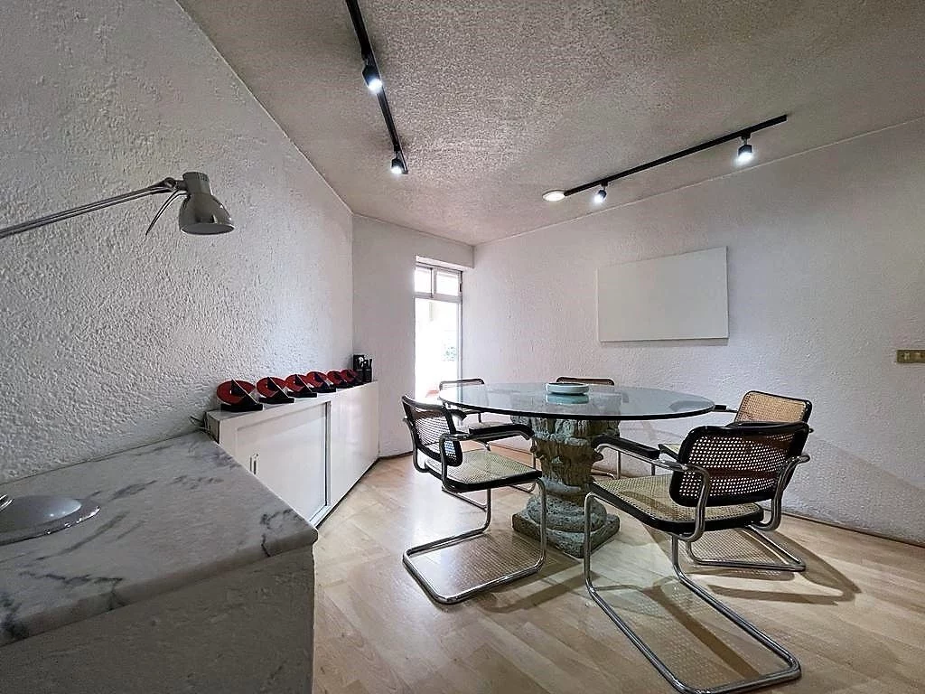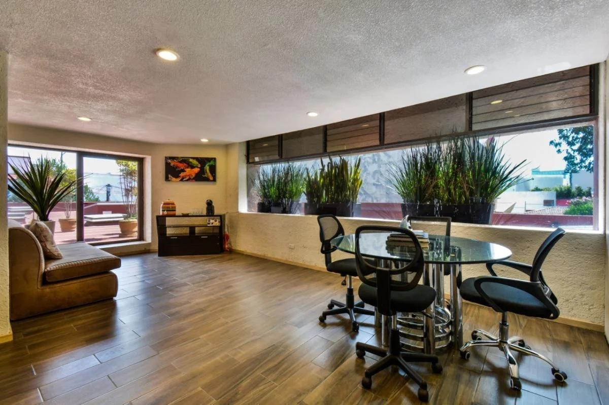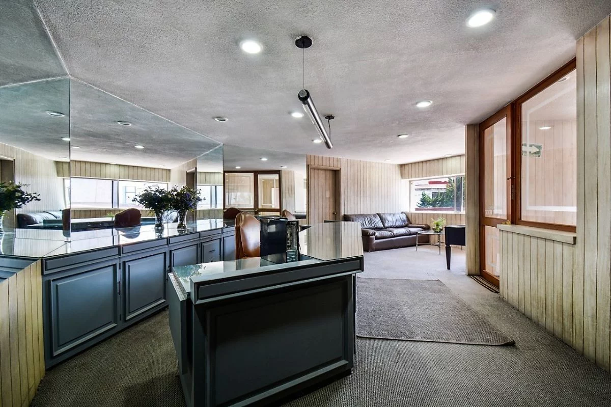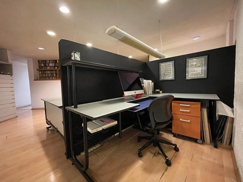 En planta baja, consta de amplio estacionamiento para 24 autos, caseta de vigilancia, y área de archivo. En primer nivel, recepción, 16 privados, 6 baños, cocineta, 3 cuartos de archivo y patio interior. En segundo nivel, sala de juntas, 2 baños de uso común, y dos privados grandes cada uno con baño. Cuenta con CCTV y sistema de intercomunicación.