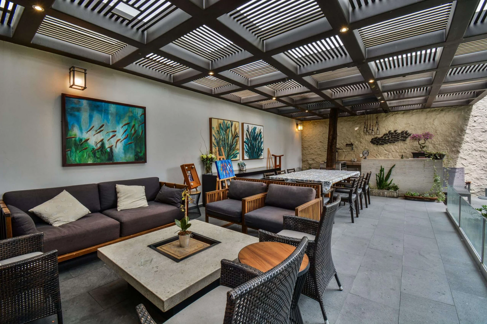 La sala y el comedor, con vistas al jardín, son el lugar ideal para compartir risas y buenos momentos con amigos y familia. Y cuando se trata de cocinar, la cocina perfectamente diseñada hace que cada platillo sea un verdadero festejo. El family y el ante comedor son el escenario perfecto para esas cenas familiares, con fácil acceso a la terraza techada totalmente equipada para tus parrilladas y celebraciones.