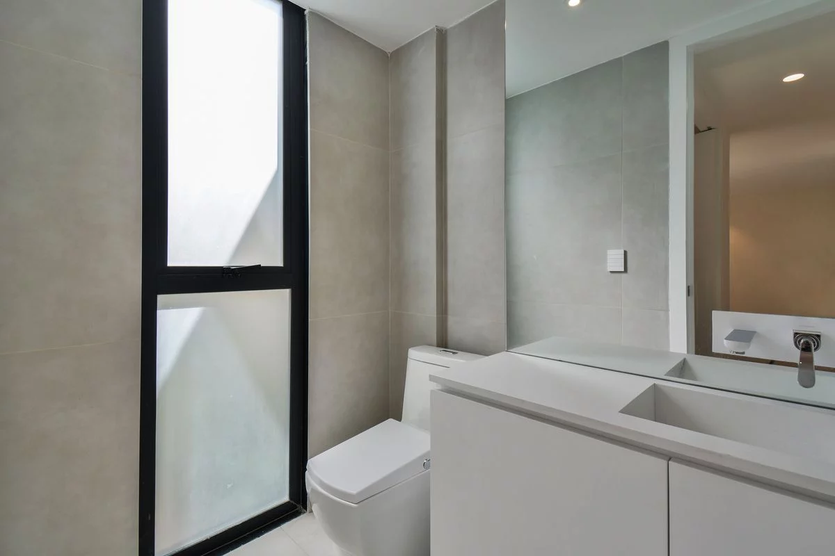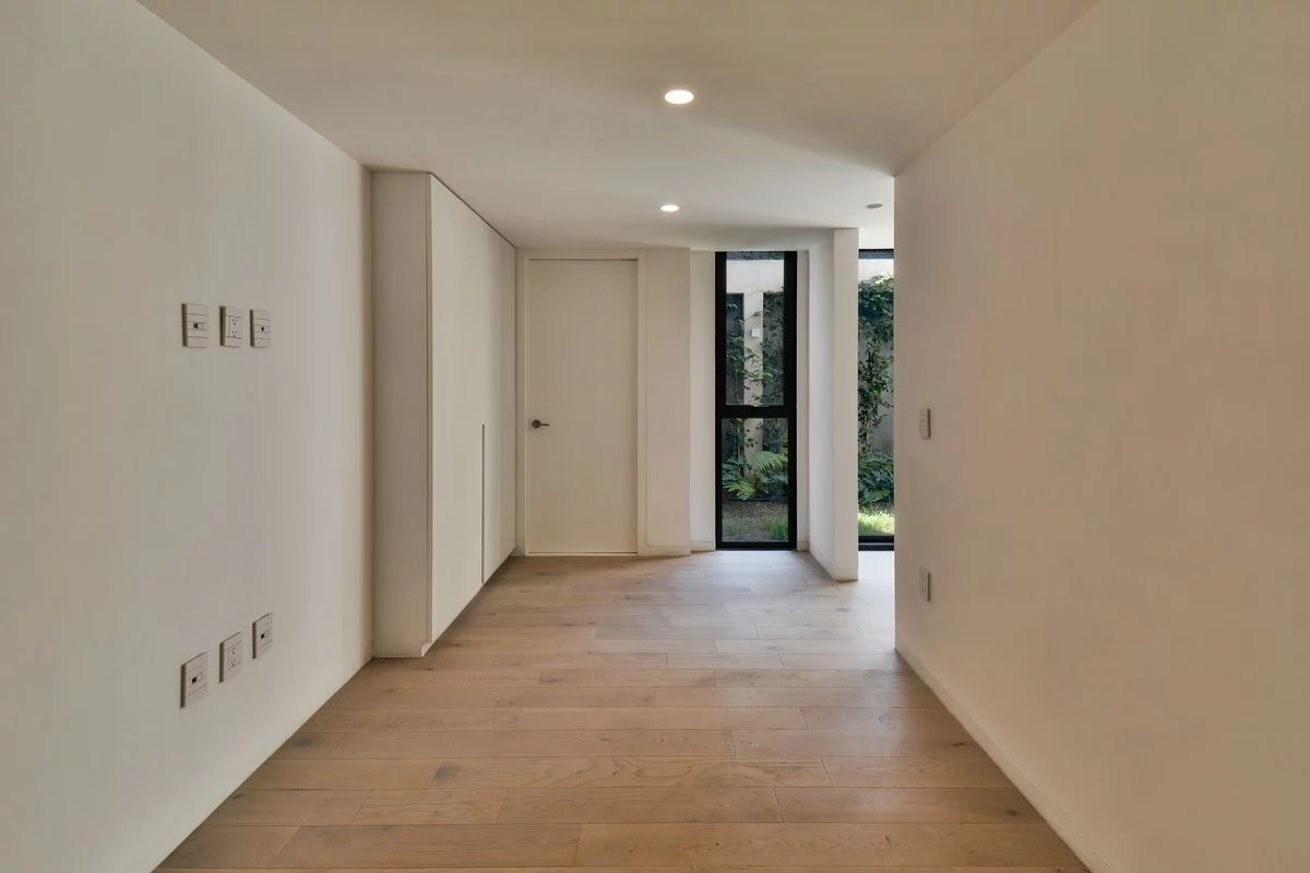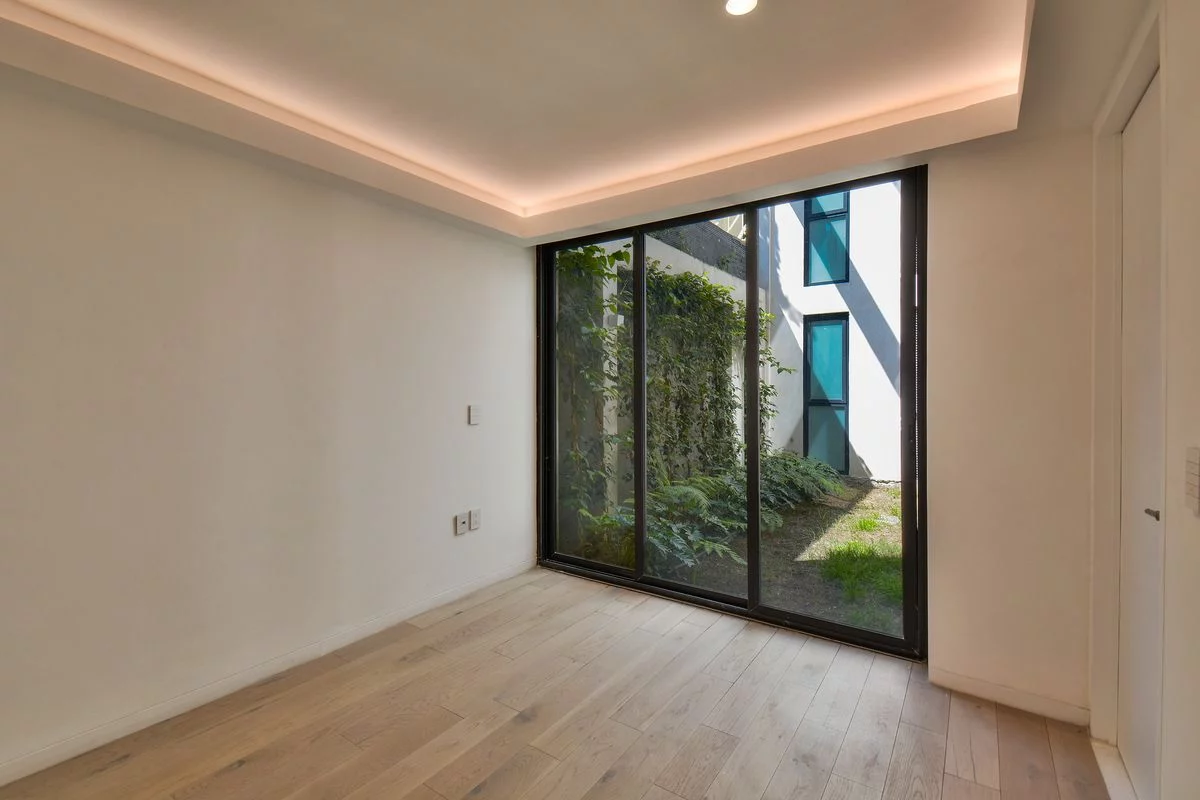 Cuenta con elevador directo a cada departamento, CCTV, control de acceso con tarjetas lectoras, calentadores solares y cisterna de 11,250 litros. El departamento 1 se ubica en planta baja, con un precioso jardín que se accede desde la amplia estancia, cocina abierta, medio baño, recámara principal con baño y vestidor, 2a recámara con closet y baño, sala de TV, bodega de 4.5M2, área de lavado integrada y 2 estacionamientos.
