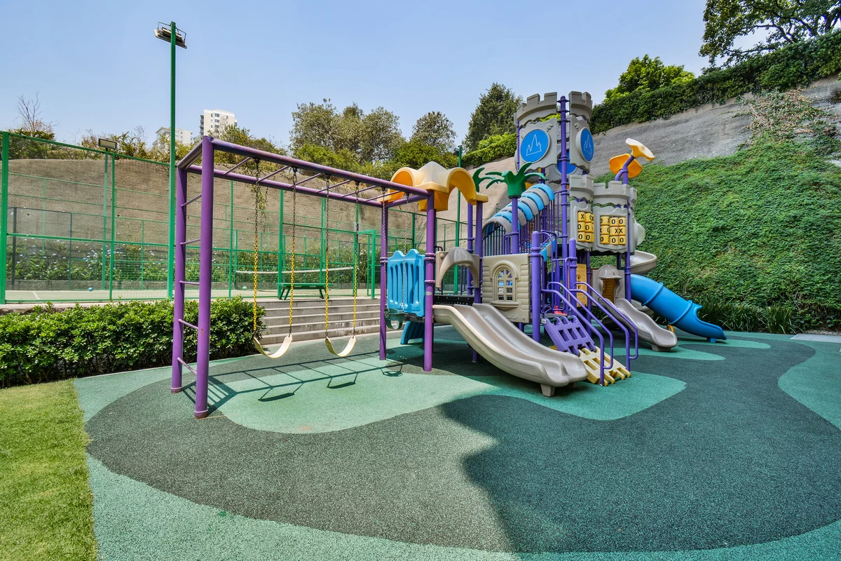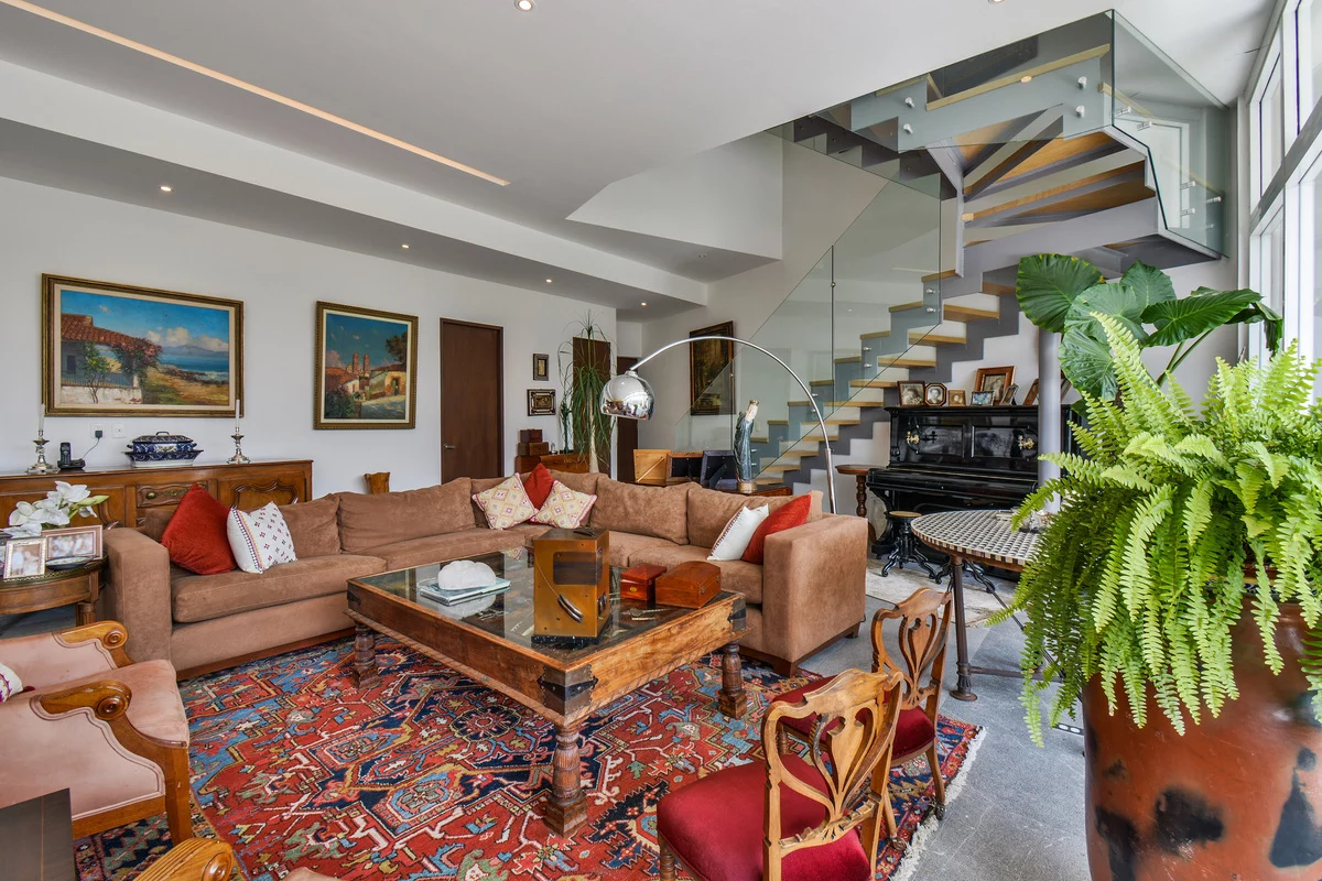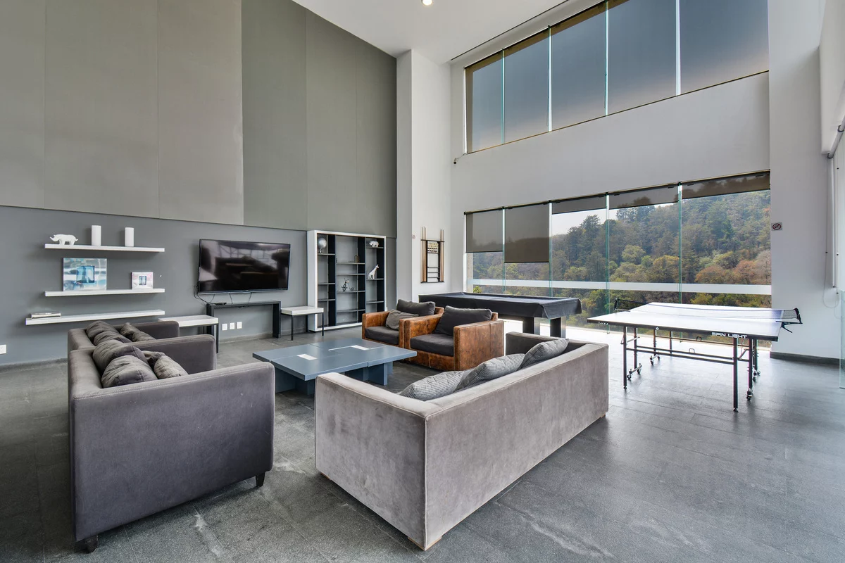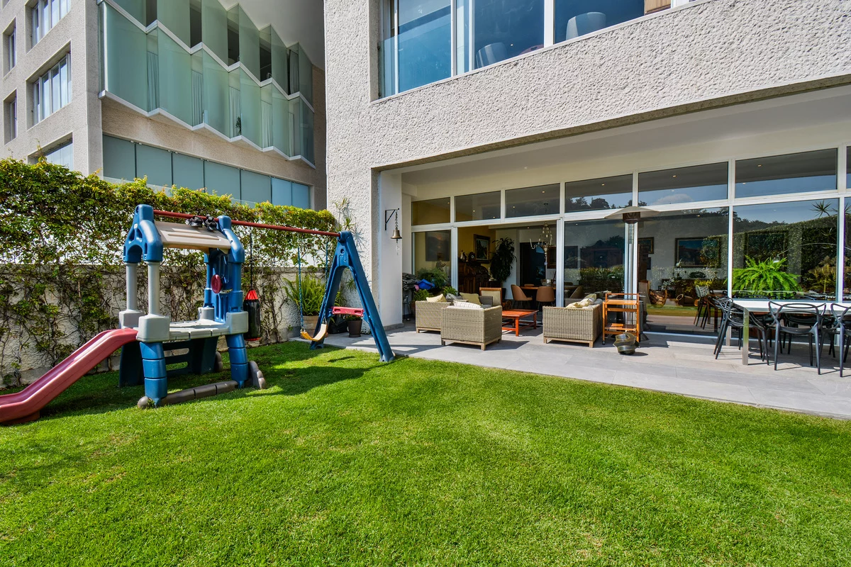 ESPECTACULAR DEPARTAMENTO EN PLANTA JARDÍN EN EL EXCLUSIVO DESARROLLO CUMBRES DE SANTA FE EN EL EDIFICIO BASALTO. Cuenta con amplios espacios muy iluminados. Esta desarrollado en 2 niveles. En planta baja cuenta con vestíbulo, sala y comedor con vista a la terraza y al jardín, cocina de gran tamaño con barra de granito y terraza y medio baño. En planta alta cuenta con 3 recámaras cada una con baño y vestidor, sala de tv, cuarto de servicio y área de lavado, 5 estacionamientos techados y estricta vigilancia. En áreas comunes cuenta con alberca, ludoteca, gimnasio, cancha de tennis, cafetería, área de juegos infantiles, salón de eventos y servicio médico.