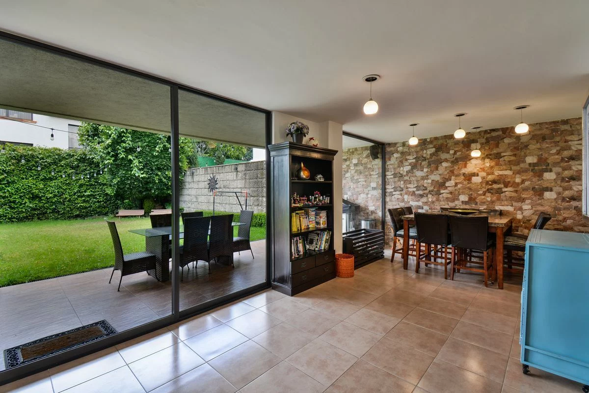 El terreno está totalmente jardinado, con preciosa terraza techada, salón de usos múltiples, y departamento con 2 recámaras, estancia, 1.5 baños, cocina y área de lavado.