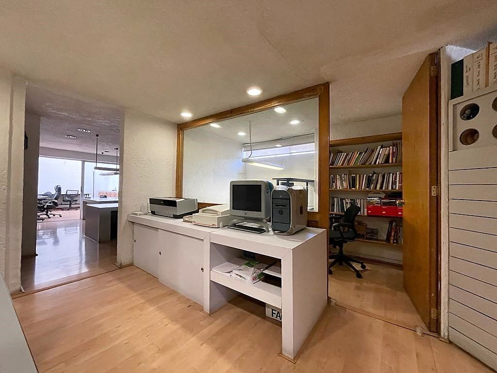 En planta baja, consta de amplio estacionamiento para 24 autos, caseta de vigilancia, y área de archivo. En primer nivel, recepción, 16 privados, 6 baños, cocineta, 3 cuartos de archivo y patio interior. En segundo nivel, sala de juntas, 2 baños de uso común, y dos privados grandes cada uno con baño. Cuenta con CCTV y sistema de intercomunicación.